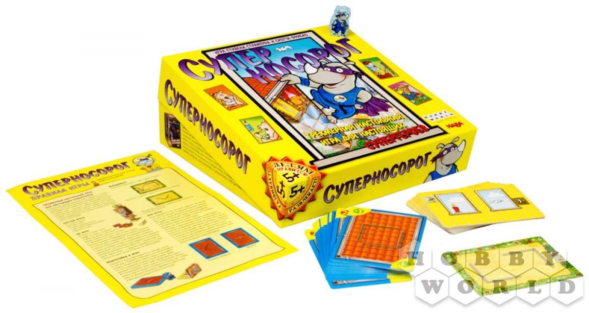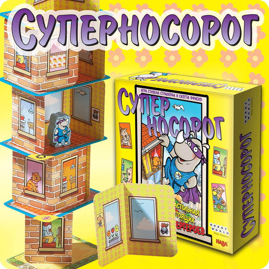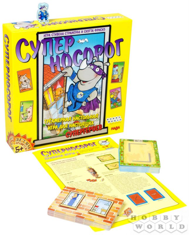 Помогите отважному герою забраться на здание! Данная настольная игра проверит вашу аккуратность и предоставит карты крыш и стен для строительства здания. В свой ход вы сможете ставить карты, формируя дом, но делать это нужно будет по определенным правилам, которые диктуются специальными маркировками на картах. Эти символы могут усложнить и либо облегчить задачу, к примеру, следующий игрок пропускает свой ход, либо берет себе дополнительную карту. Не стоит забывать, что носорог хочет подняться на самый верх, а фигурка его довольно тяжела, поэтому следует быть аккуратным и не разрушить всю конструкцию. В этом случае, причастный игрок, увы, сразу проиграет. Участник, который первым избавится от карт крыш на руках, станет победителем!