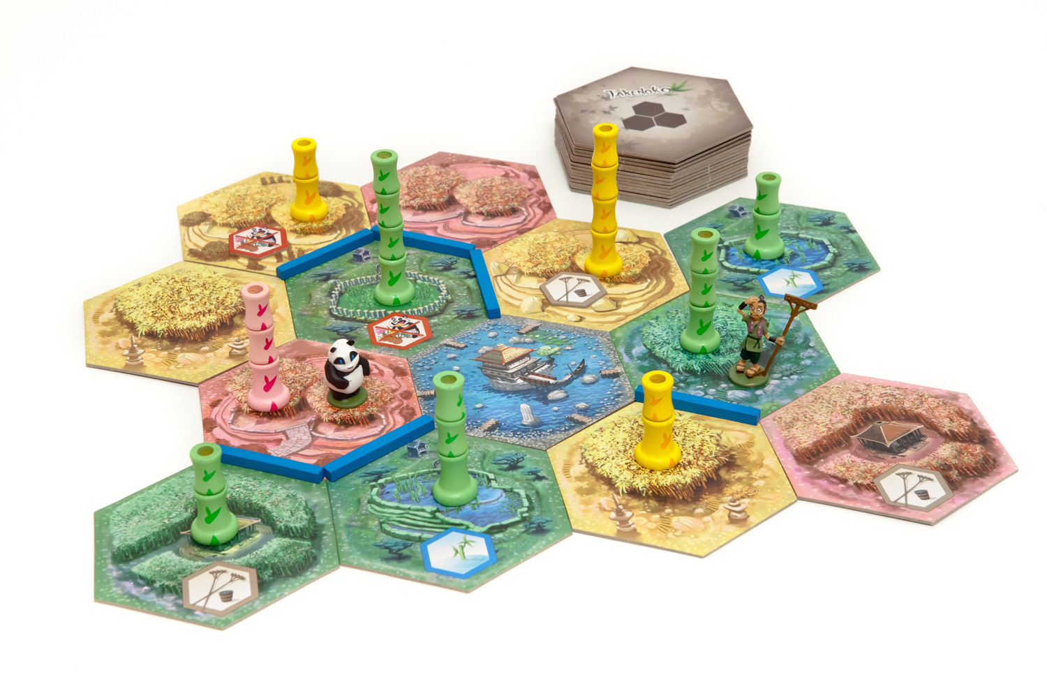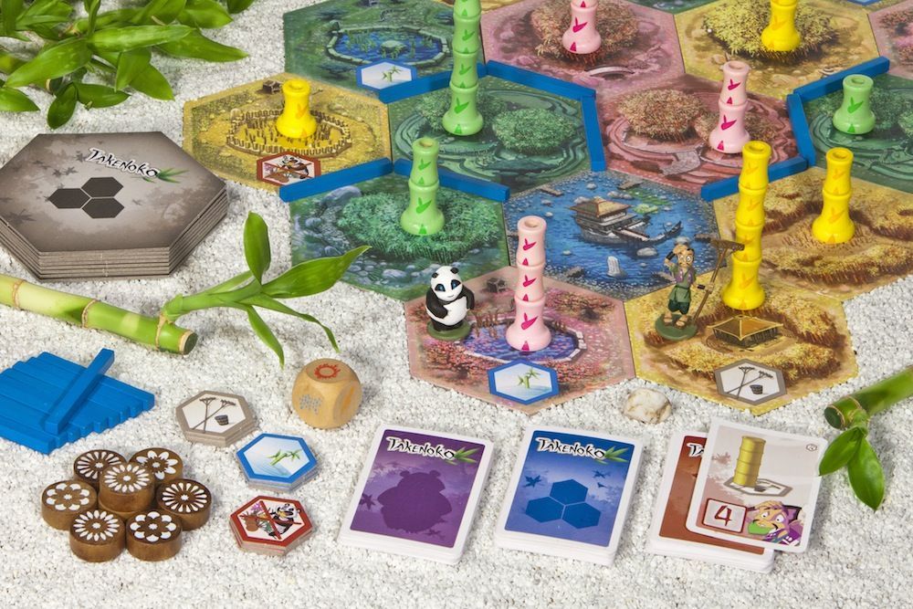 Это семейная настольная игра, в которой игрокам предстоит взять под свой контроль бамбуковый сад. В свой ход участники смогут расширять территорию сада, растить бамбук трех разных цветов, подкармливать панду и следить за переменчивой погодой. Погодные условия определяются с помощью броска кубика, который, при удачном раскладе, может дать вам возможность сделать дополнительное действие, либо улучшить участок. Помимо этого, игроки будут выполнять задания императора, и завершение этих миссий даст в конце партии заветные победные очки.