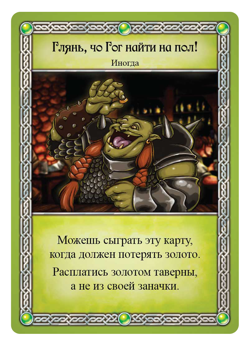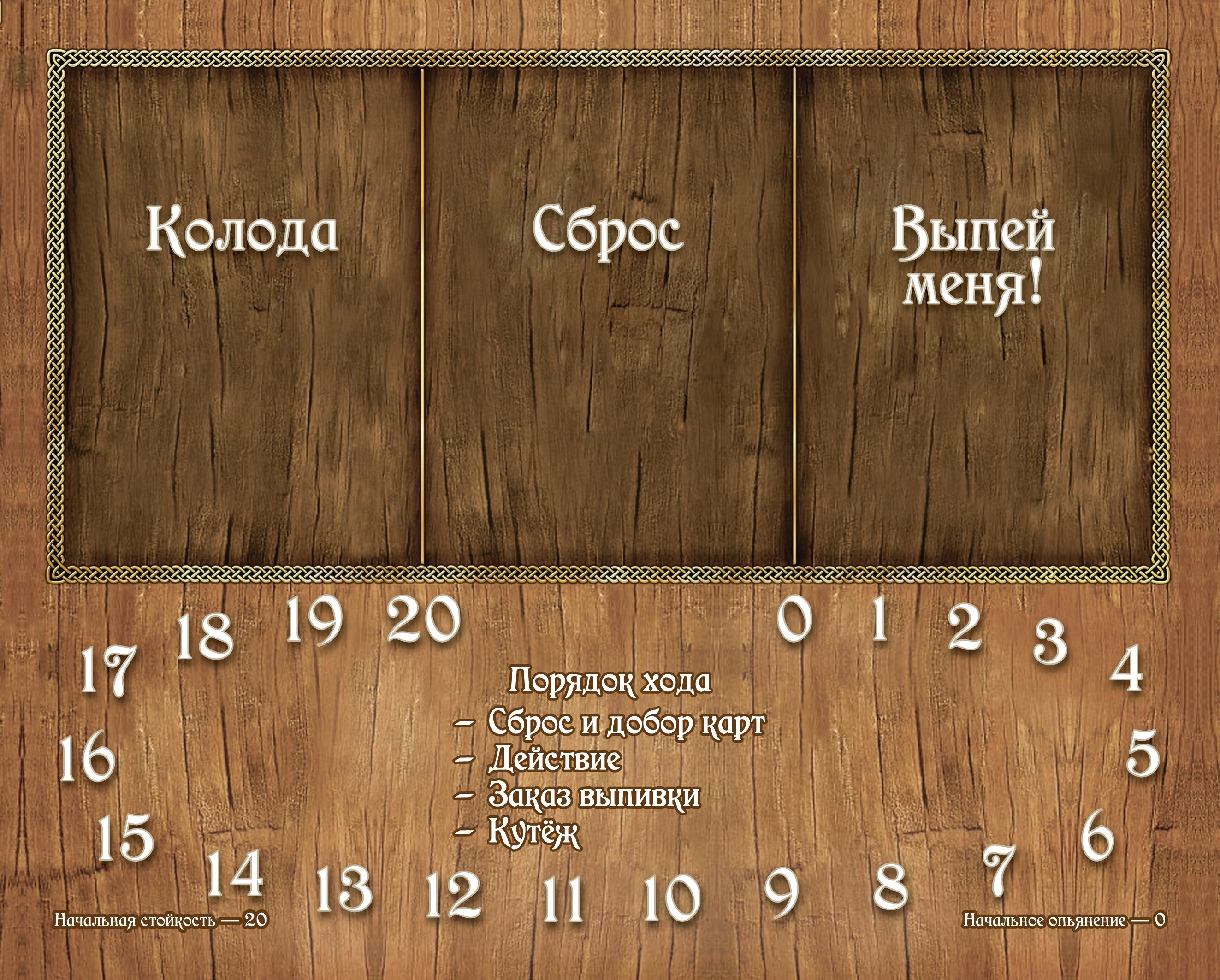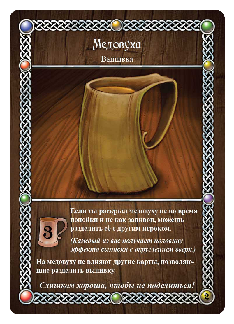 Вас ждет яростное карточное противостояние, полное веселья и горячительных напитков. В коробке вы найдете четыре колоды разных персонажей, обладающих уникальными умениями и способностями. Получив на руки планшет трезвости и золотые монеты, игроки стараются довести трезвость соперников до минимума, стараясь сохранить свои монеты. Познакомьтесь с новыми персонажами - полуогром, сильным воином,бардом, способным очаровать любого своими балладами, иллюзионисткой, способной затуманить разум соперника и дварфом, делающим тайники с золотом.