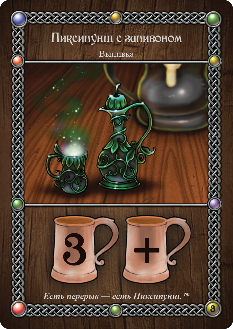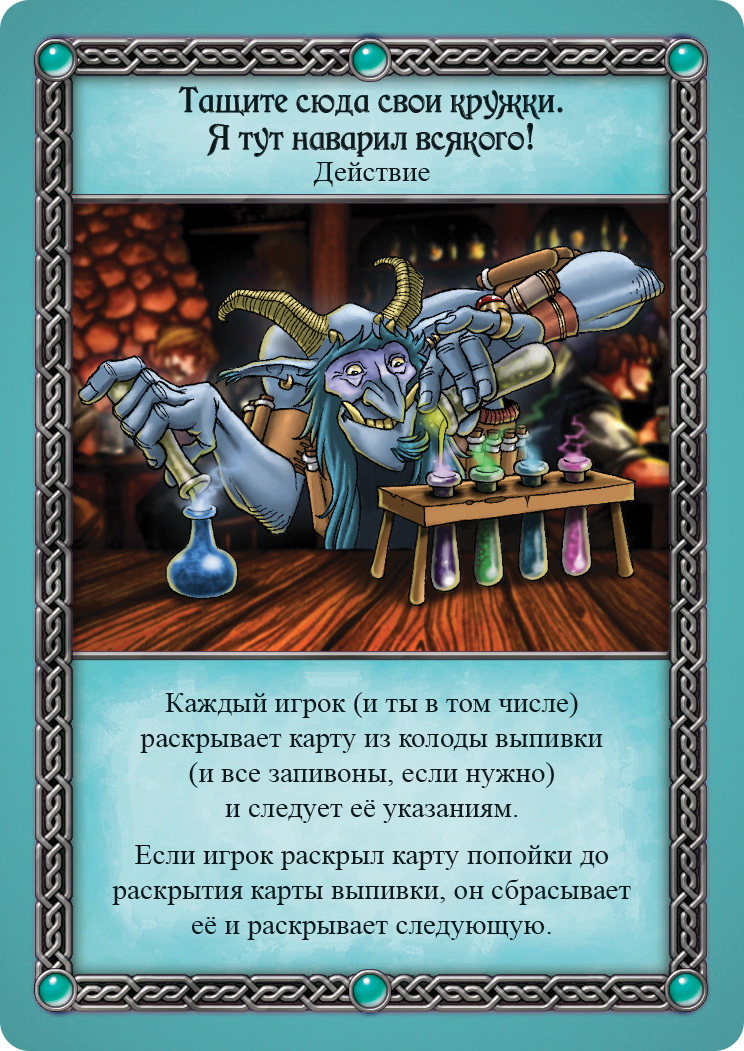Вас ждет жаркое карточное противостояние, полное веселья и высокого градуса. Получив на руки колоду персонажа, игрокам предстоит применять специальные способности и уникальные умения, чтобы повысить уровень опьянения соперника и при этом не растерять свои золотые монеты. Гномиха, чародейка, тролль и орк столкнутся друг с другом и выяснят, у кого больше трезвости. Разыгрывайте и добирайте карты, применяйте умения, подкидывайте выпивку разной крепости соперникам и сохраните свою трезвость! Этот набор полностью самостоятельный, однако, при желании, вы можете смешать его с базовой версией игры. И тогда партии станут еще интереснее и разнообразнее!