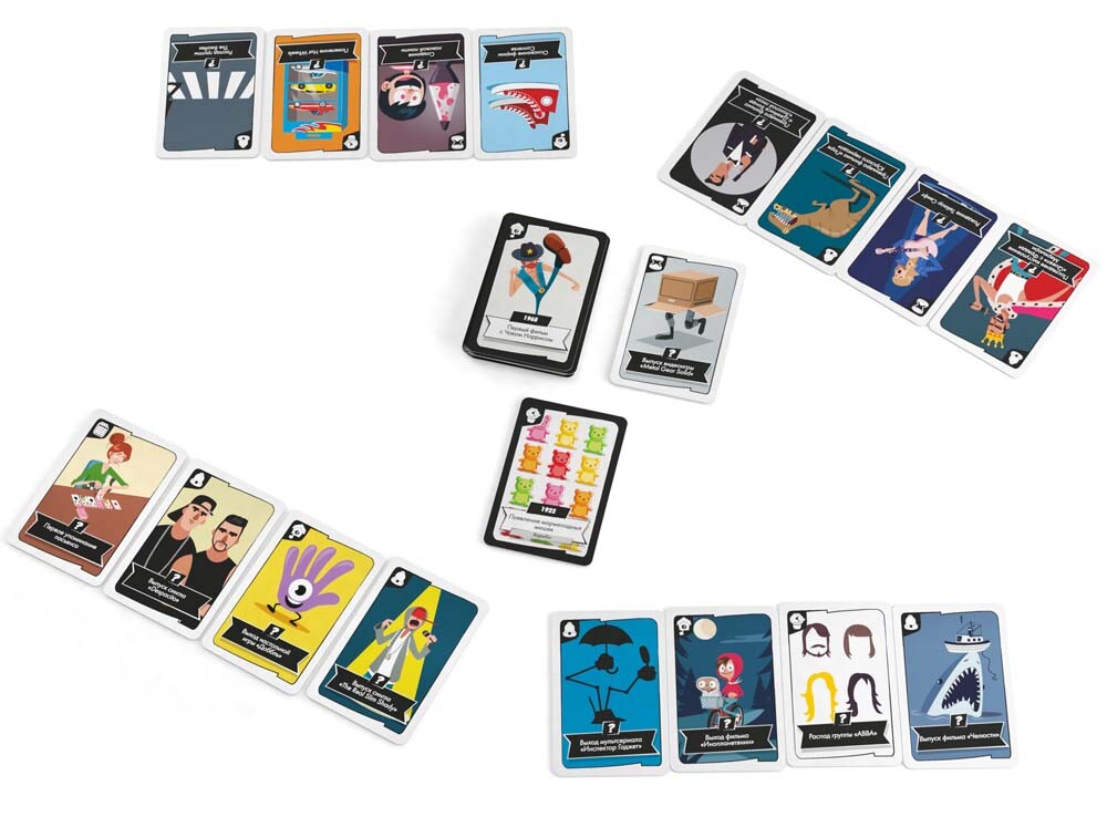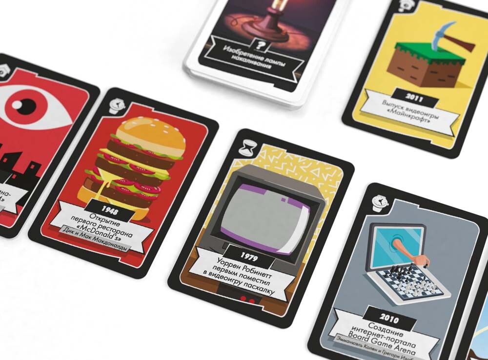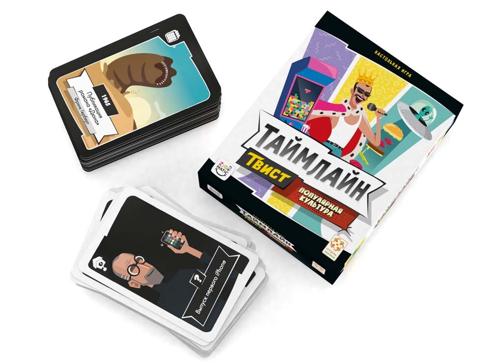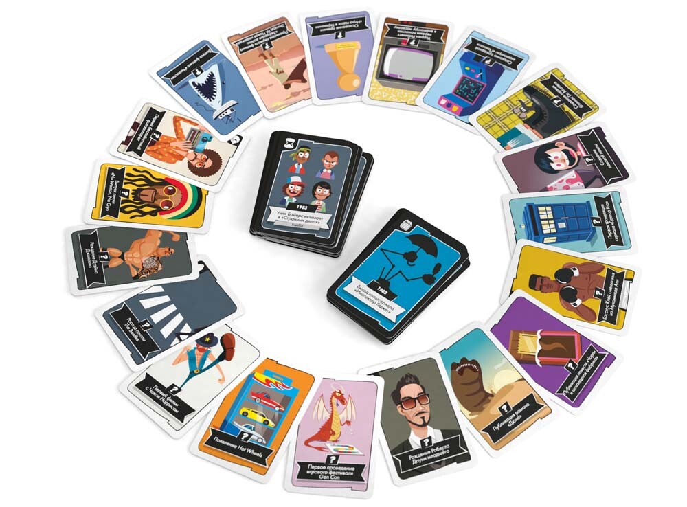 Карточная соревновательная викторина содержит множество карт с яркими иллюстрациями и описаниями различных знаковых событий мировой культуры. Игрокам необходимо выложить эти карты по порядку, ориентируясь на время происходящего. Причем в данном выпуске участнику нужно выкладывать карты в двух направлениях - по прошлому времени и настоящему. Когда все из участников закончат, переверните карты и посмотрите на даты. Проверьте, насколько хорошо вы знаете историю и определите победителя!