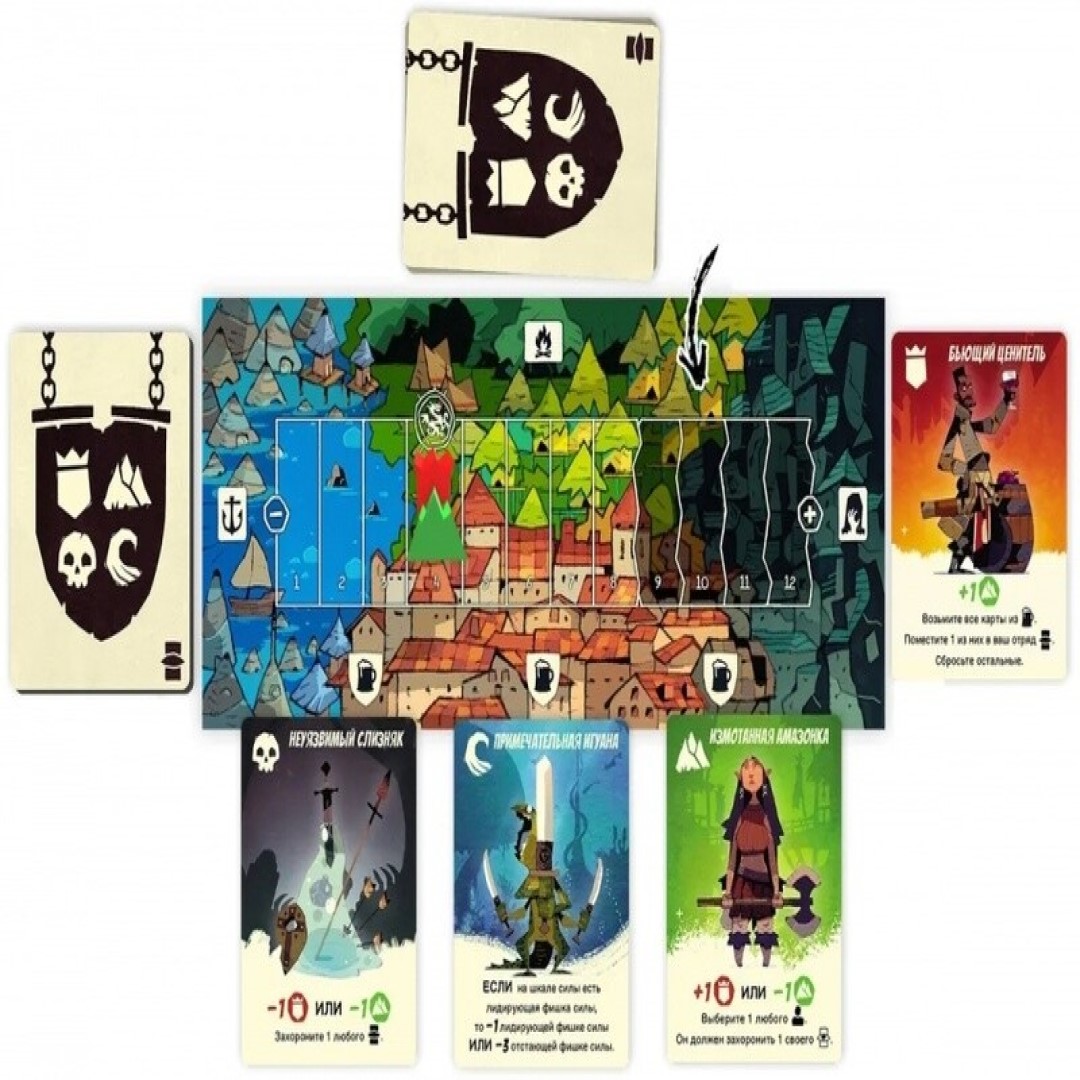 В данной настольной игре каждый из участников станет тайным лидером определенной фракции и постарается занять заветный королевский трон. Для победы необходимо заручиться поддержкой нескольких сторон, но баланс сил постоянно меняется, и предугадать, какая роль досталась другому игроку довольно сложно. Стремительное противостояние достигает своего пика, когда вы стараетесь ввести в заблуждение соперника и получить себе преимущество, разыгрывая карты героев. Стороны различаются по цвету, и шансы на победу есть всегда. Главное, чтобы у вас было больше больше персонажей определенного цвета, чем у конкурента.