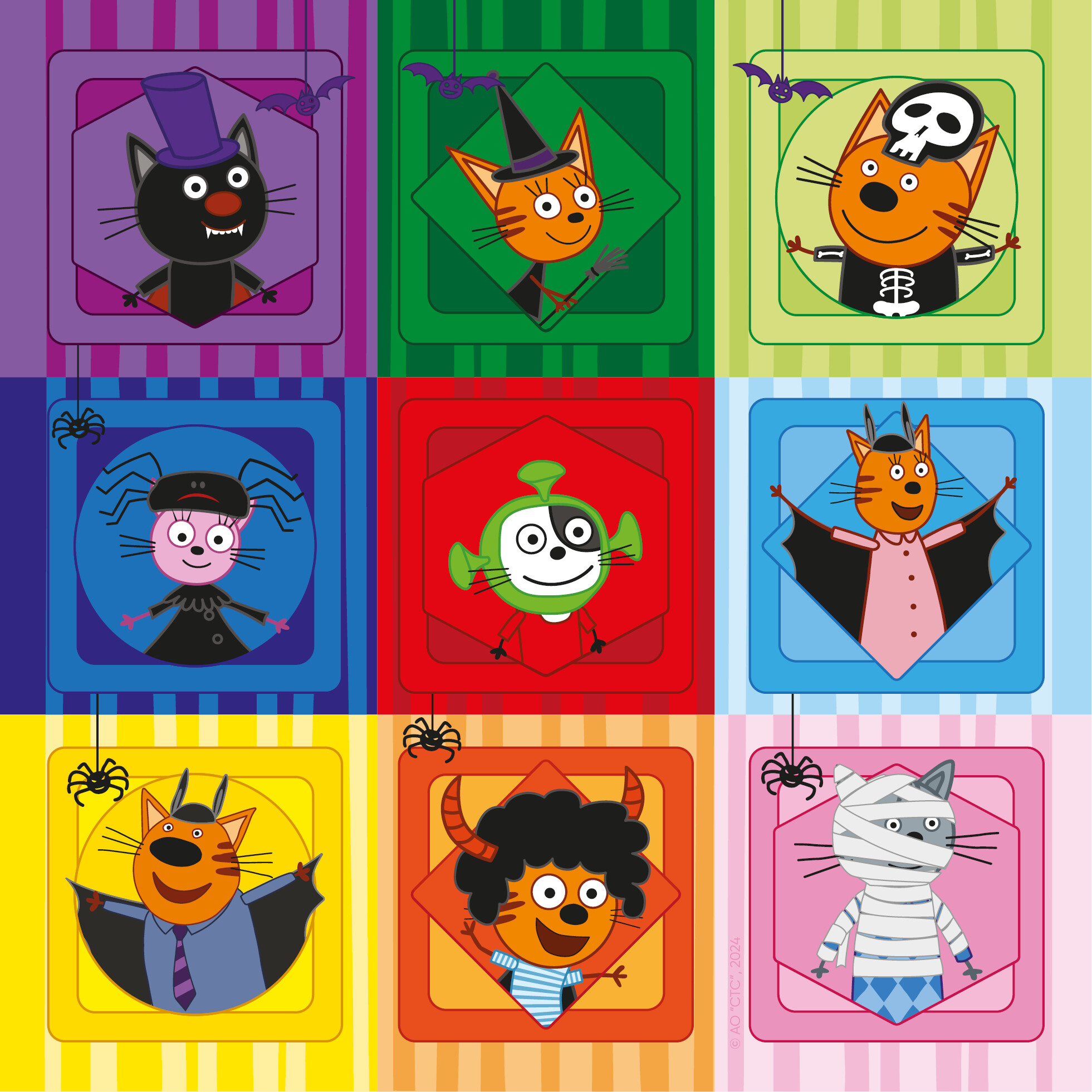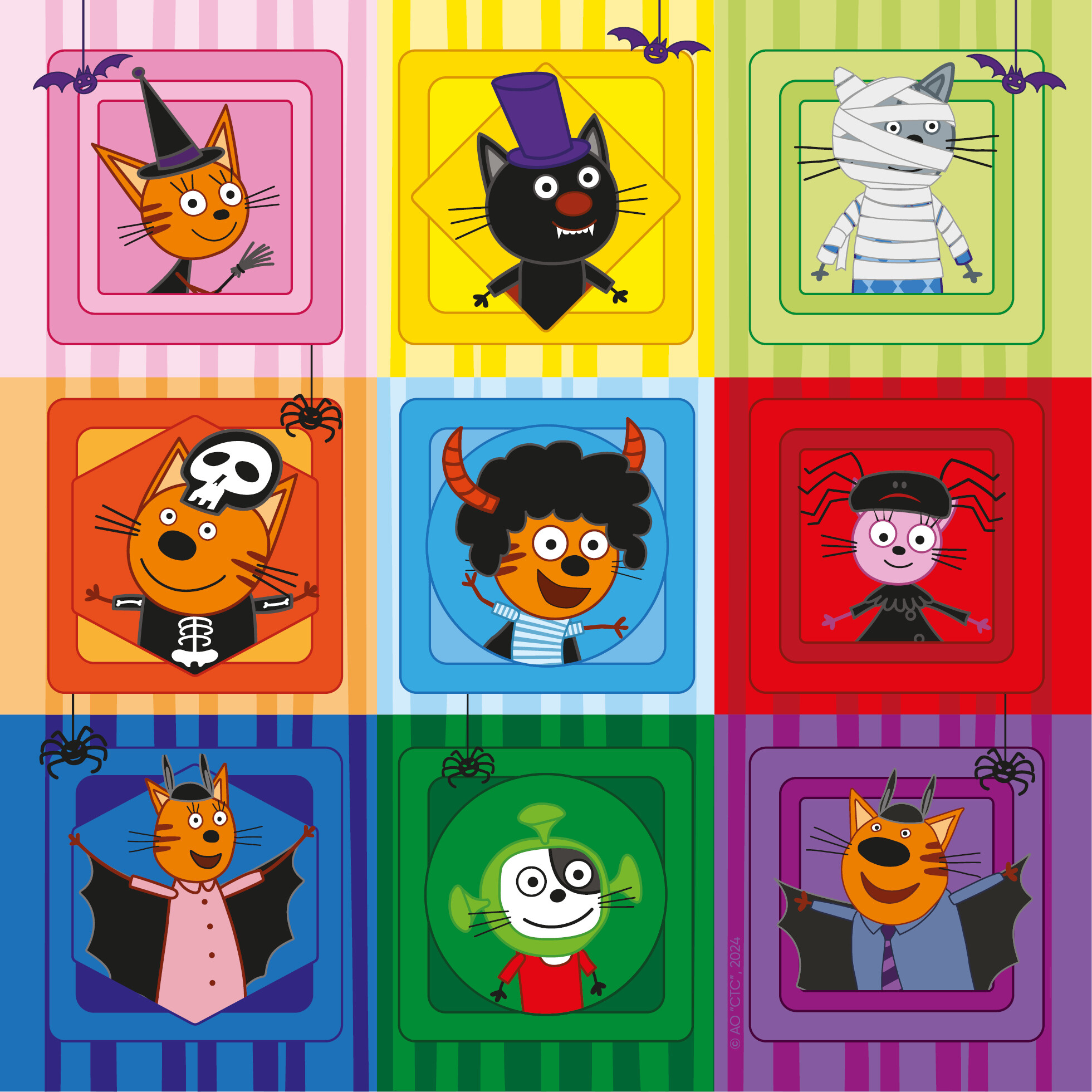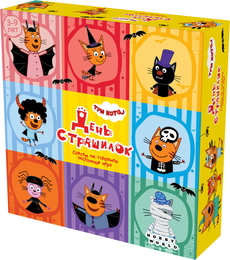 В данной настольной игре, основанной на популярном мультсериале, юных игроков ждет веселое соревнование! В коробке вы найдете множество жетонов с различными яркими изображениями котов, одетых в стиле Хэллоуина. Помимо этого, для каждого участника предназначен специальный планшет с такими же иллюстрациями. Выложив жетоны в центр стола в закрытую, игроки по очереди переворачивают один из них, после чего ищут на скорость на своих планшетах совпадение. Для того чтобы жетон достался вам, нужно будет назвать цвет, форму рамки или усатого героя. Тот из игроков, кто будет быстрее остальных и сможет первым набрать девять жетонов, тот и победит!