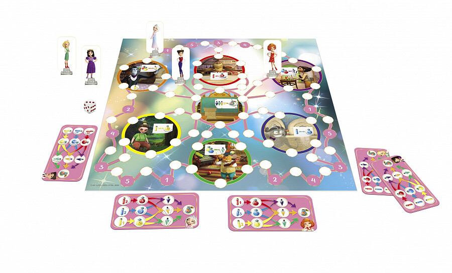 В данной настольной игре юные участники примут на себя роли героев мультсериала и посоревнуются в создании зелий. Бросая кубик и перемещаясь по полю, они будут собирать различные ингредиенты, а попав к определенным персонажам смогут создать отвар. Главное, чтобы хватило компонентов. У каждого игрока будет специальный планшет, на котором легко можно будет увидеть свой прогресс. Создав определенное количество небольших зелий, царевны смогут сварить настоящее волшебное зелье, и тот, кто сделает это первым, станет победителем!