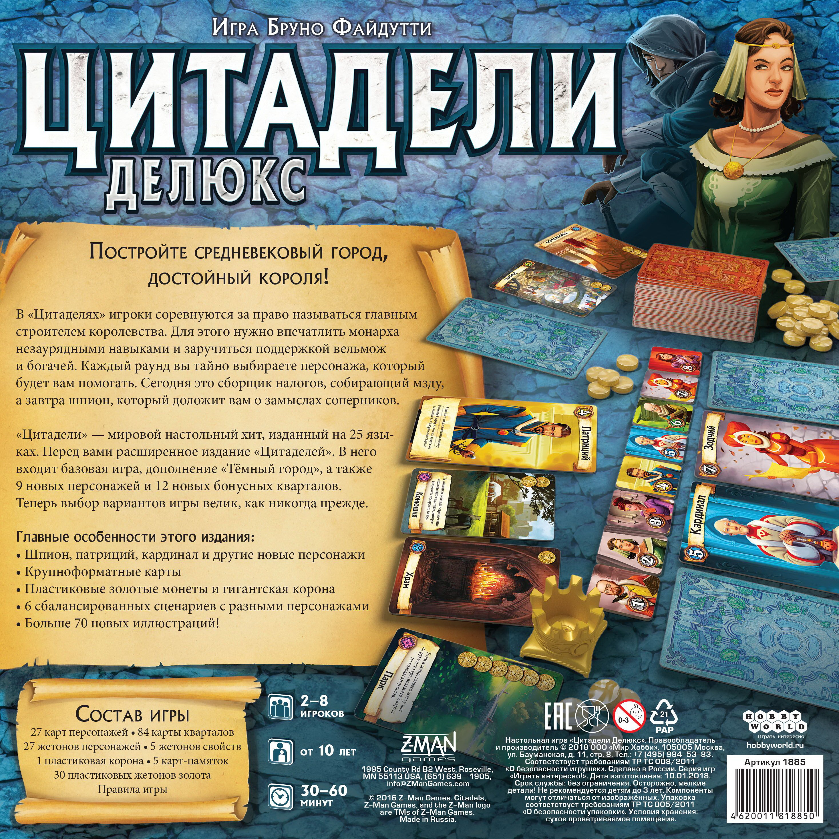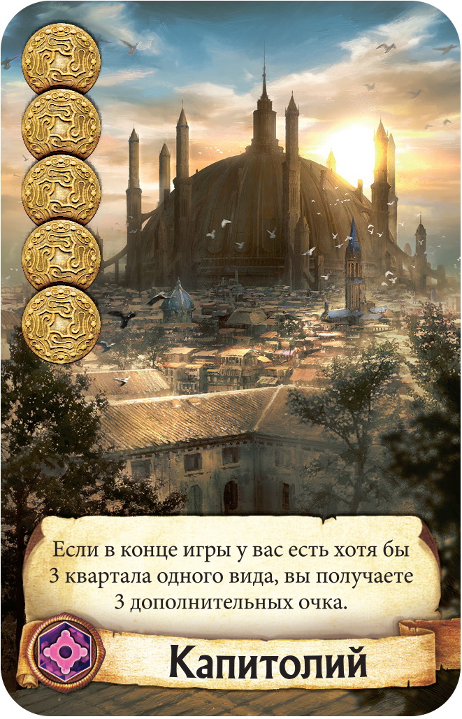 Дополненная и улучшенная версия настольной классики! Как и в оригинале, игрокам предстоит посоревноваться в строительстве лучших зданий королевства. Каждое здание стоит разное количество золотых монет, и в свой ход все игроки получают по две монеты. После им достается карта персонажа, на которых строится весь игровой процесс, ведь каждый из них обладает уникальными особенностями, способными дать преимущество и замедлить соперников. В данной версии вас ждет множество новых персонажей, способных еще эффективнее идти к победе, возможность влиться в игру восьмому игроку, а также карты большого размера в обновленном дизайне, а также настройка правил. Кто сможет построить первым семь зданий, тот и станет победителем!