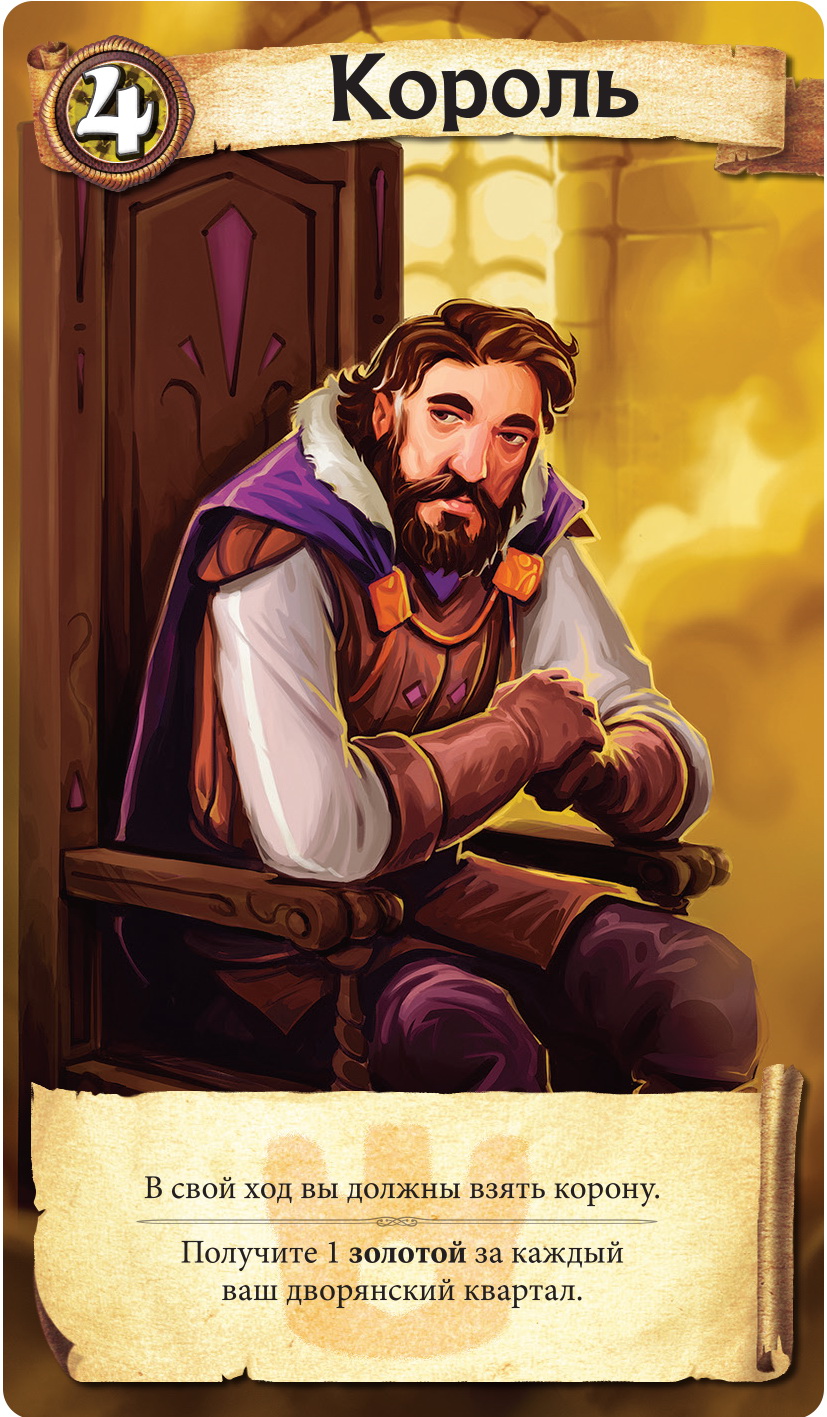 Как и в оригинале, игрокам предстоит посоревноваться в строительстве лучших зданий королевства. Каждое здание стоит разное количество золотых монет, и в свой ход все игроки получают по две монеты. После им достается карта персонажа, на которых строится весь игровой процесс, ведь каждый из них обладает уникальными особенностями, способными дать преимущество и замедлить соперников.