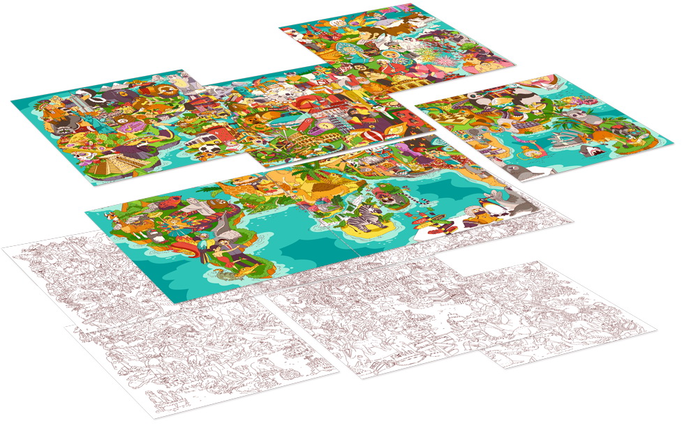 Игровое поле – это не просто цветная и чёрно-белая карты мира, на них изображены важные и знаковые вещи, относящиеся к странам и территориям на карте. В процессе игры дети не только узнают расположение стран, но и узнают много нового о них. Об оформлении игры "Тур Культур" можно говорить долго, но лучше просто посмотреть на фотографии – иллюстрации великолепны.
