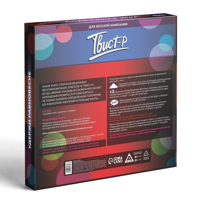 Классическая игра теперь и с алкогольными фантами! Раскладывайте поле, крутите стрелку и ставьте руки или ногу в определенное место, стараясь не упасть. Помимо этого, периодически вам нужно будет выполнять задания для застолья. Веселье обеспечено!