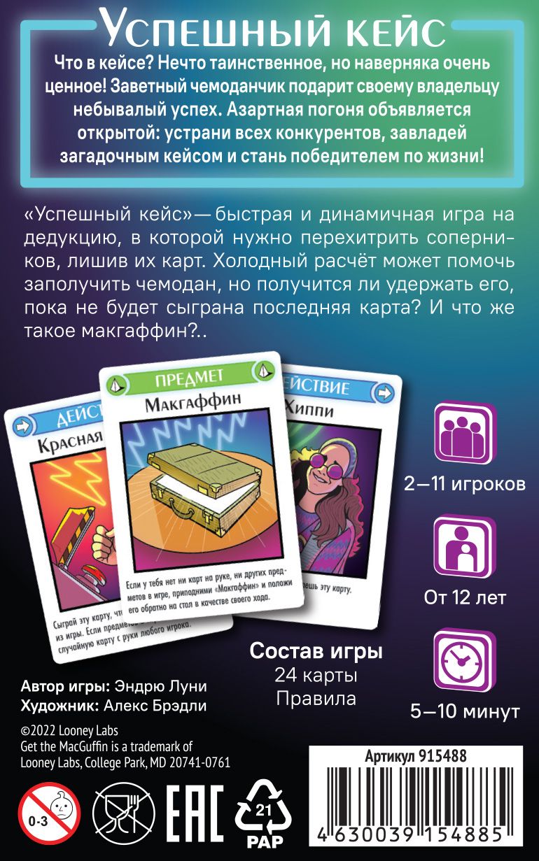 Игрок, который сможет заполучить чемодан и удержать его до последней карты, станет победителем!
