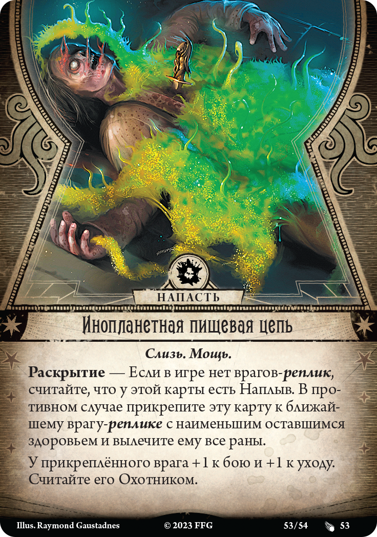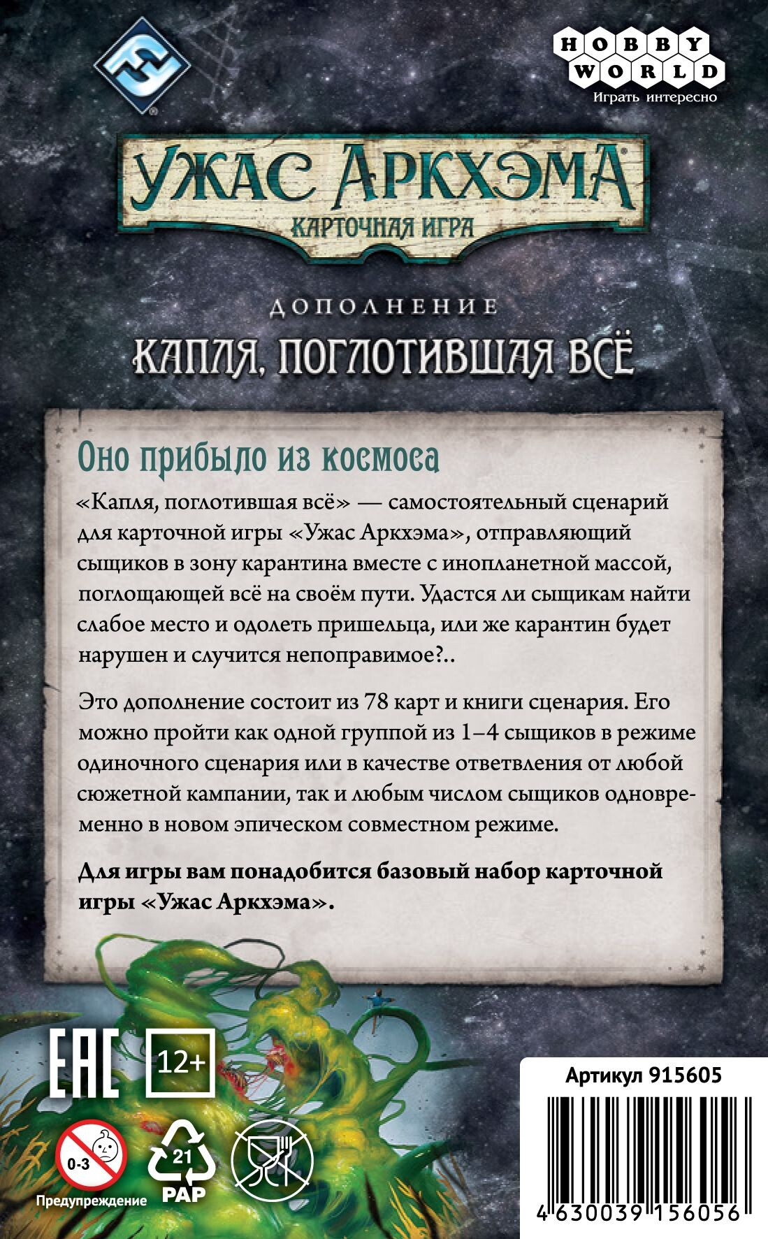 С каким только ужасам не приходилось сталкиваться опытным сыщикам, но вновь перед ними открываются зловещие тайны и серьезные опасности. Инопланетный организм, оказавшись в городе, разрастается с пугающей скоростью и поглощает все на своем пути. Смогут ли герои остановить монстра и спасти свои жизни? Новый сценарий для культовой настольной игры обладает своим сюжетом и подойдет как для одного игрока, так и для компании. Ищите улики, собирайте полезные предметы и сражайтесь с врагами, стараясь сохранить рассудок. На вас вся надежда!
