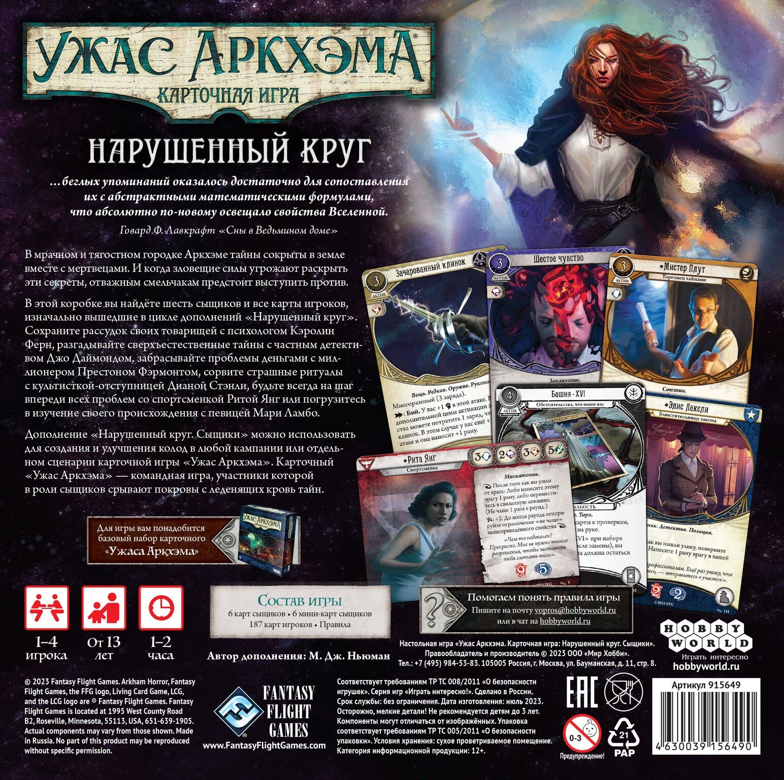 Мрачный город таит множество тайн, и только вам под силу пролить на них свет! В роли шести героев из предыдущих наборов игры ищите улики, обследуйте место преступления, станьте свидетелем настоящего ужаса и постарайтесь сохранить свой рассудок. Сыграйте за настоящего представителя секты, предприимчивого частного детектива, проницательную психологиню, быстро решающего проблемы миллионера, спортсменку и известную артистку. Всех их свела судьба в этом городе, и теперь героям предстоит приложить немало усилий, чтобы выжить... Благодаря своей универсальности, данное дополнение подойдет как для базовой игры, так и для различных других дополнений. Зловещие приключения ждут!