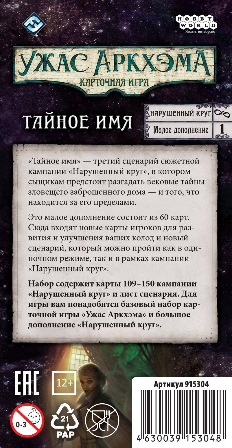*Внимание! Это не самостоятельная игра. Вам понадобится базовая версия "Ужас Аркхэма. Карточная игра" и большое дополнение "Ужас Аркхэма. Карточная игра: Нарушенный круг".