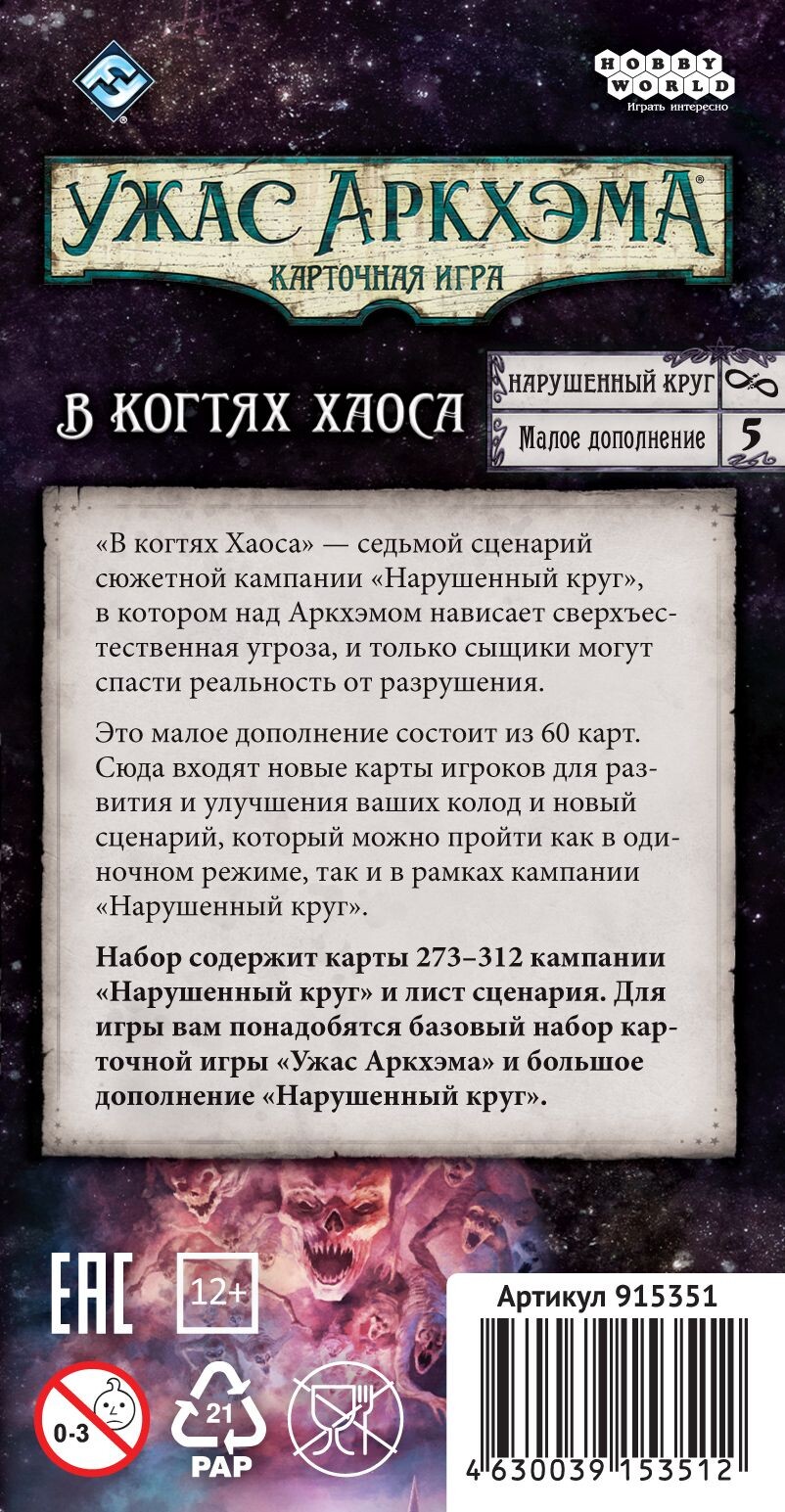 *Это не самостоятельная игра. Вам понадобится базовый набор "Ужас Аркхэма. Карточная игра" и дополнение "Нарушенный круг".