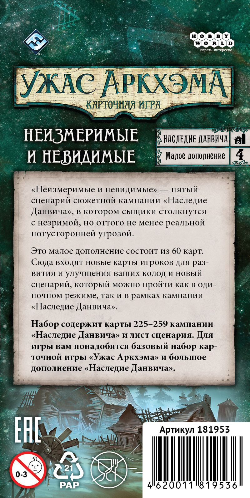 Настольная игра "Ужас Аркхэма. Карточная игра: Наследие Данвича. Неизмеримые и невидимые"
