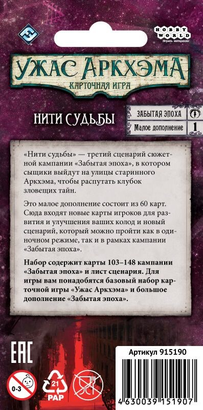 Настольная игра: Ужас Аркхэма. Карточная игра: Забытая эпоха. Нити судьбы