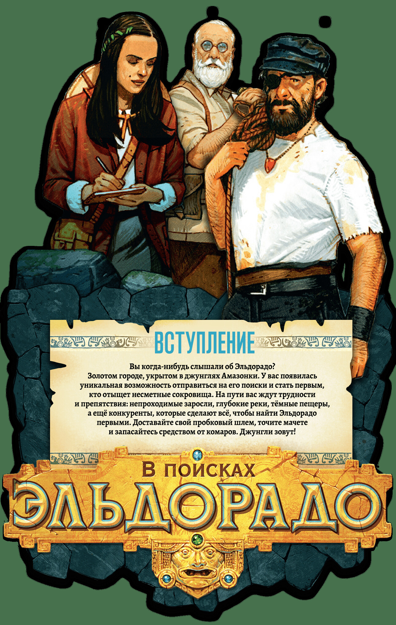 Отправляйтесь на поиски неизведанного! В настольной игре "В поисках Эльдорадо" игроки выступят в роли экспедиторов, желающий найти легендарную землю Эльдорадо. Сбор команды, найм различных помощников в попытках опередить соперника - каждая партия будет отличаться, и выгодная для игроков стратегия определит победу. Разыгрывайте карты, приобретая улучшения и расширяя свою колоду. Какая тактика окажется выигрышной? Кто раньше остальных найдет заветную золотую землю? Давайте сыграем и узнаем!