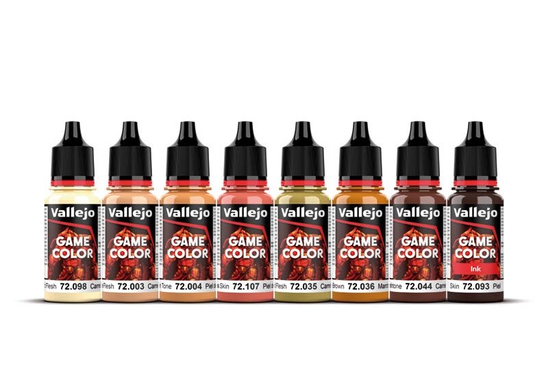 Данный набор красок предназначен для покраски коллекционных миниатюр. Восемь цветов в пластиковых баночках по 17 мл каждая отличаются по цветам и имеют разные оттенки кожи. Краски от данного производителя обладают высоким качеством и легко наносятся на поверхность моделей.