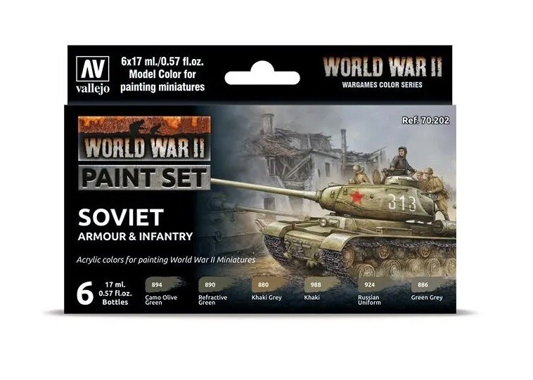 Благодаря данному набору вы сможете придать своим моделям военной техники аутентичный внешний вид! Акриловые нетоксичные краски состоят из шести цветов малой яркости, отличаются высоким качеством и легким нанесением. Объем каждой краски в наборе составит 17мл.