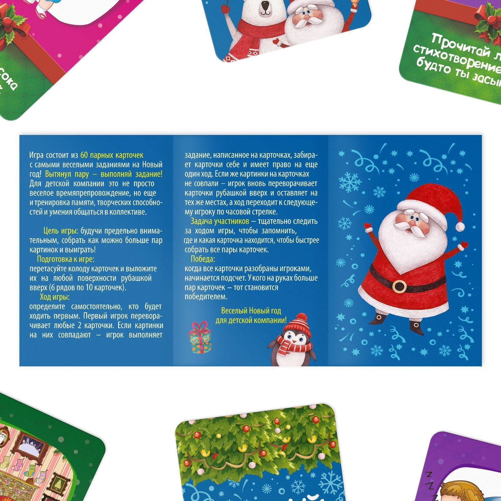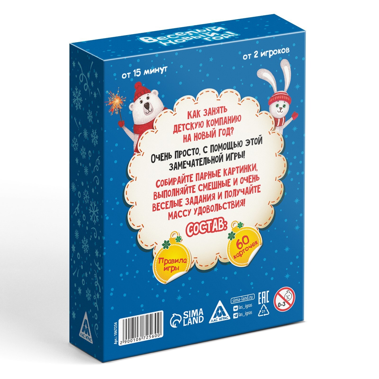 В коробке вы найдете шестьдесят карт с милыми иллюстрациями на тему новогодних праздников. У каждого рисунка есть своя пара, и для победы вам нужно собрать как можно больше парных карт. Выложив все карты в центр стола рубашкой вверх, участники по очереди переворачивают две любых карты, и смотрят на те изображения, которые им выпали. Кто сможет победить?