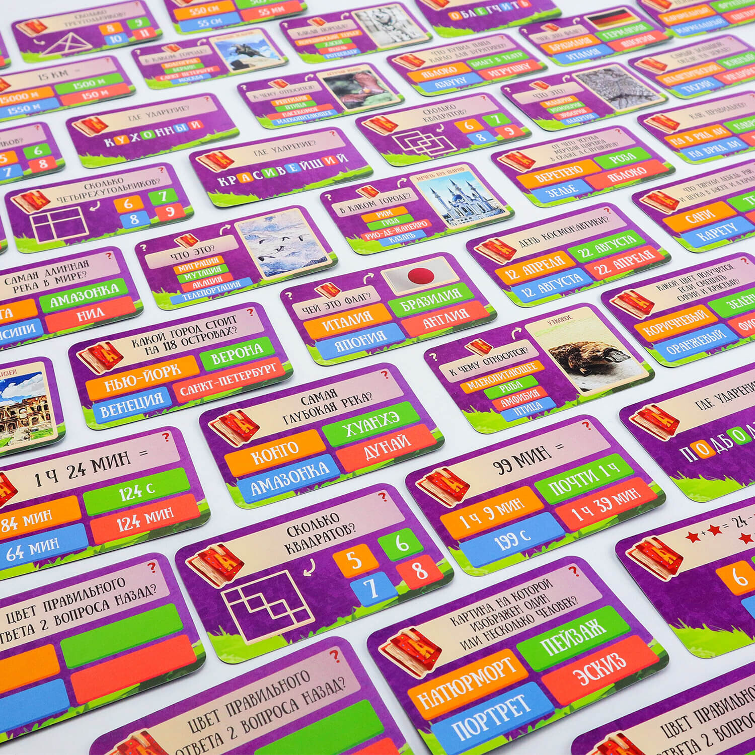 Вас ждет большое развивающее приключение! Правила игры просты - вам предстоит кидать кубик и перемещаться по яркому игровому полю, стараясь первым дойти до финишной черты. Однако, данная игра проверит ваши знания - на пути вам встретится множество разных вопросов и небольших задач. Правильные ответы дадут вам преимущество и помогут стать победителем. Попробуйте ответить на вопросы про животных, флаги, арифметику и прочее, прочее. Образовательное и красочное путешествие ждет вас!