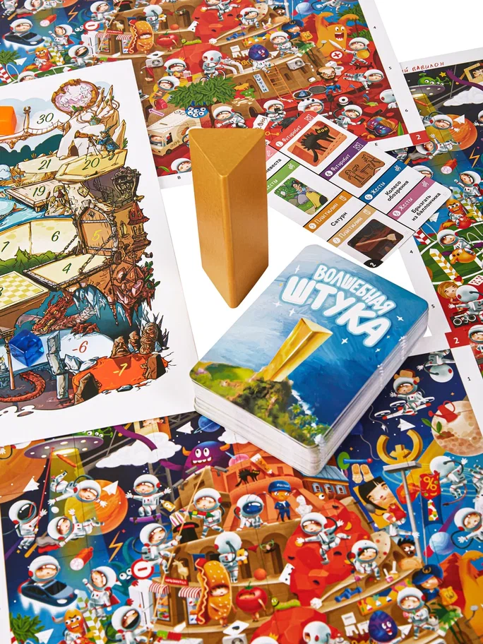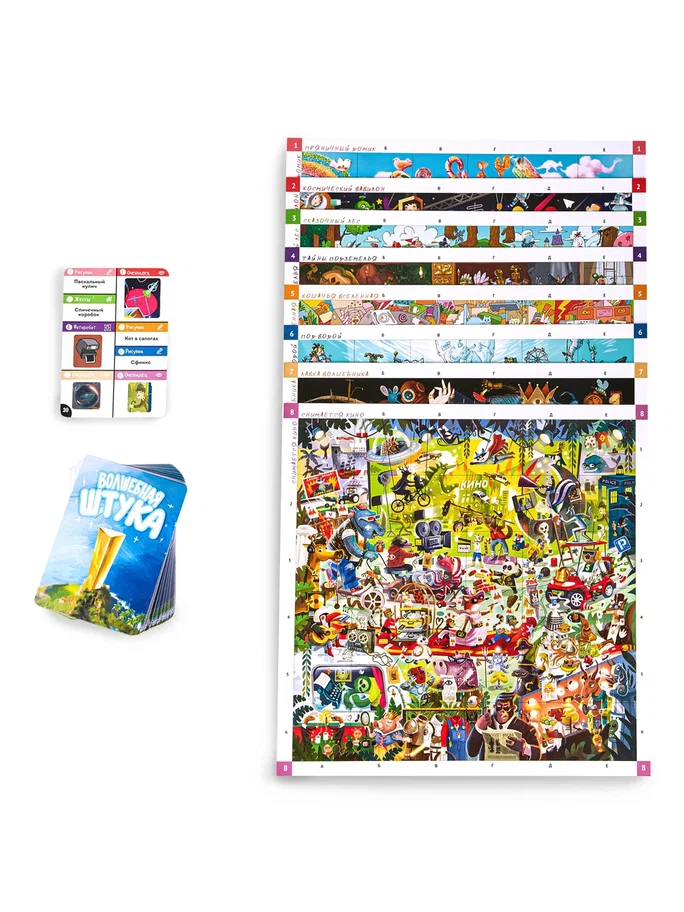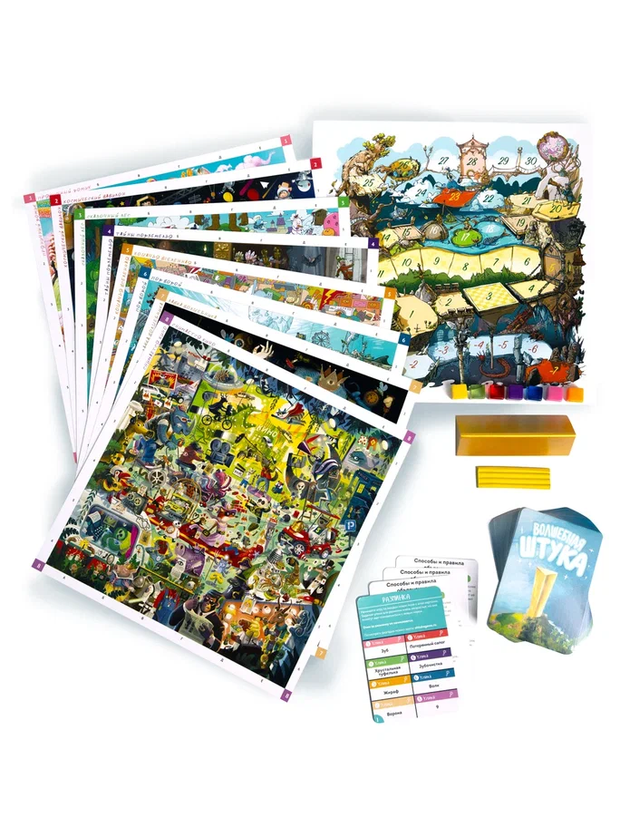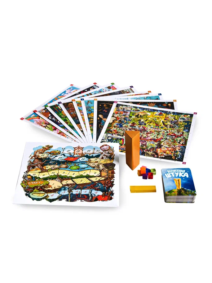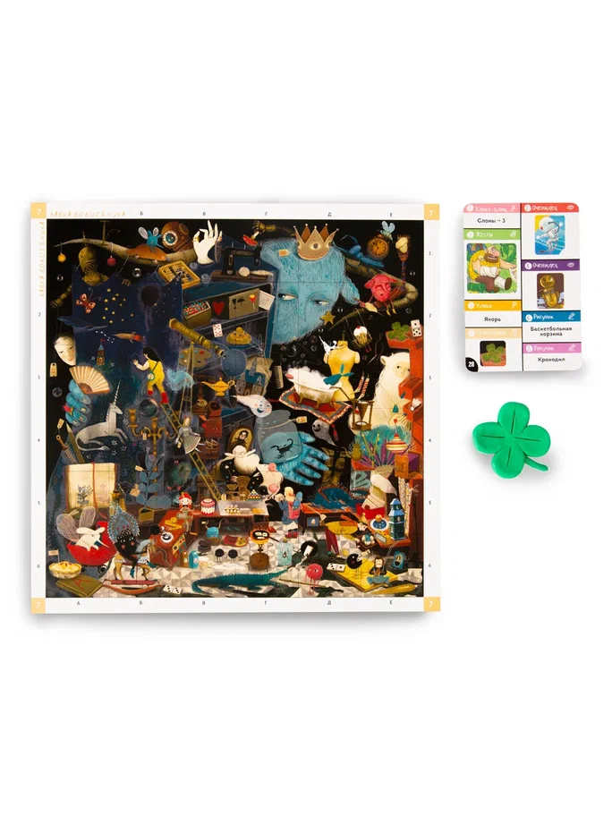 Вас ждет поистине волшебная атмосфера, а также увлекательное соревнование на внимательность. В коробке для игроков приготовлены восемь больших полей с огромным количеством разных ярких рисунков. Один из участников возьмет на себя роль ведущего и будет пытаться объяснить остальным загаданный рисунок. Помимо классических пантомим, здесь можно будет даже вылепить искомый объект из пластилина. Кто из игроков первым найдет загаданное, должен раньше остальных схватить предмет в центре стола - только тогда ему засчитаются победные очки. Проверьте свою внимательность, скорость реакции и станьте победителем!