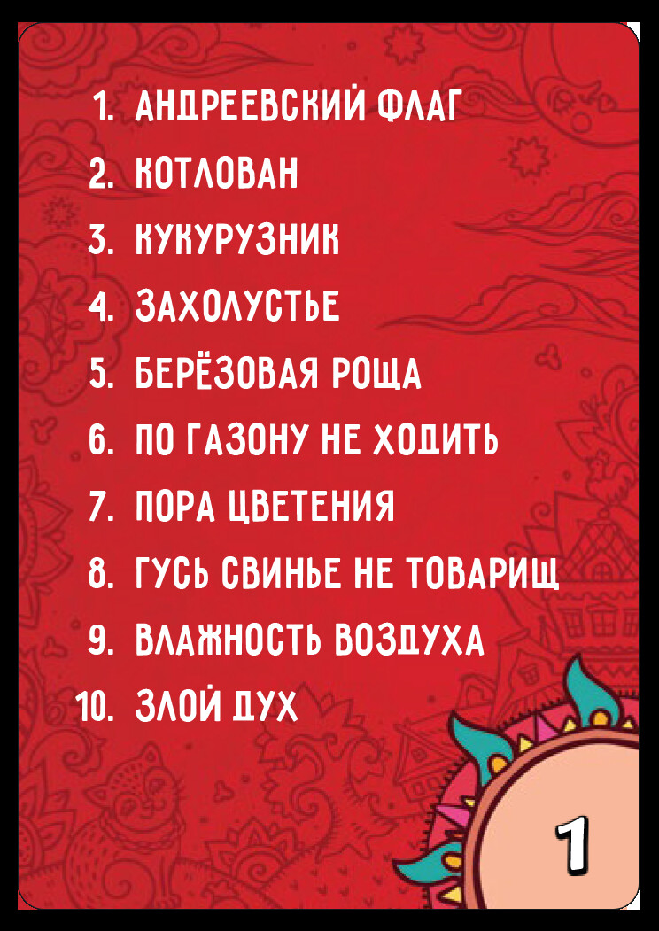 Данная версия содержит слова, посвященные культуре России. Названия культовых литературных произведений, географические достопримечательности и народные блюда. Сможете объяснить их все? Вперед, время не ждет!