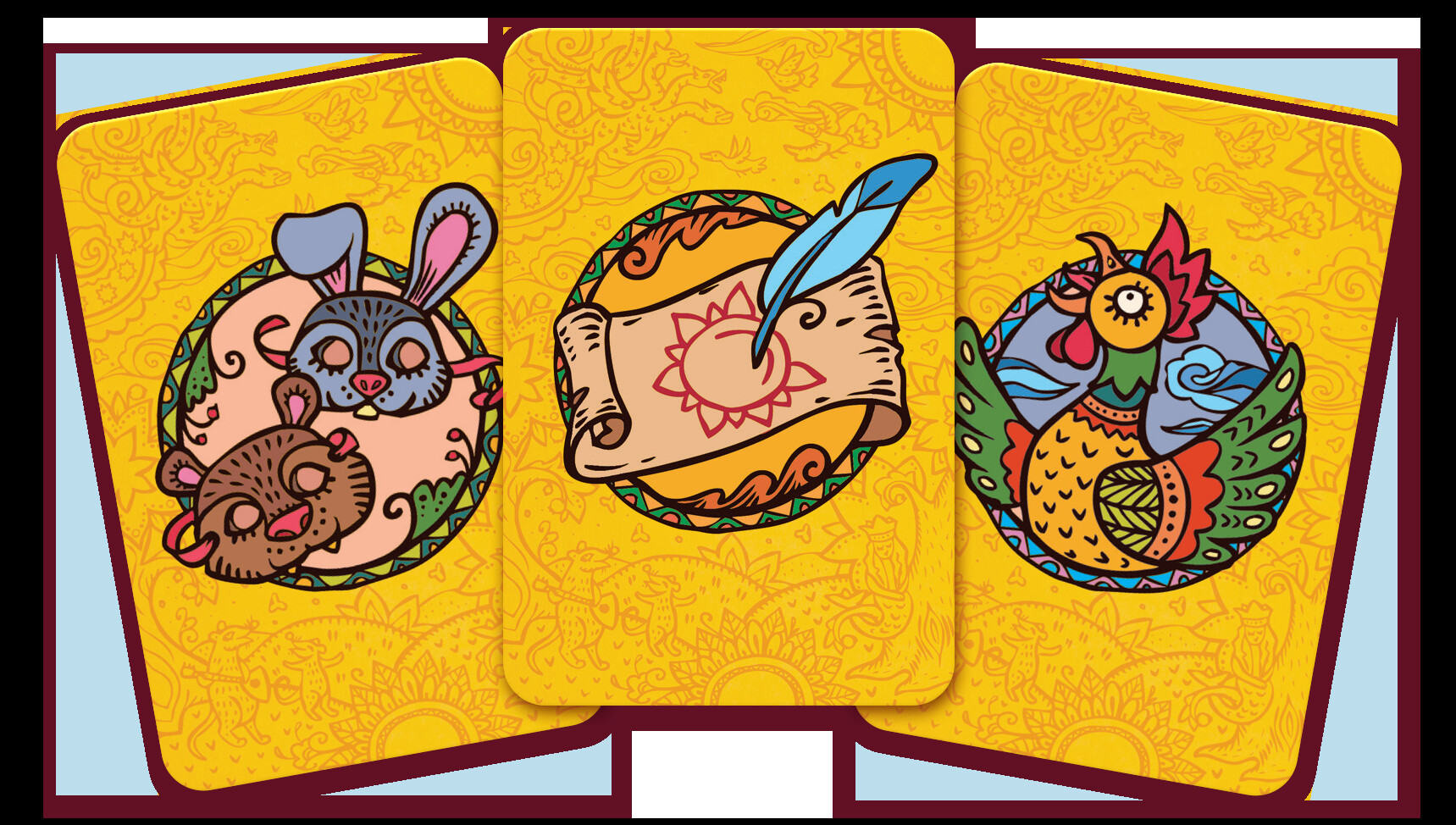 27 карт действий (9 разноцветных комплектов по 3 карты в каждом)