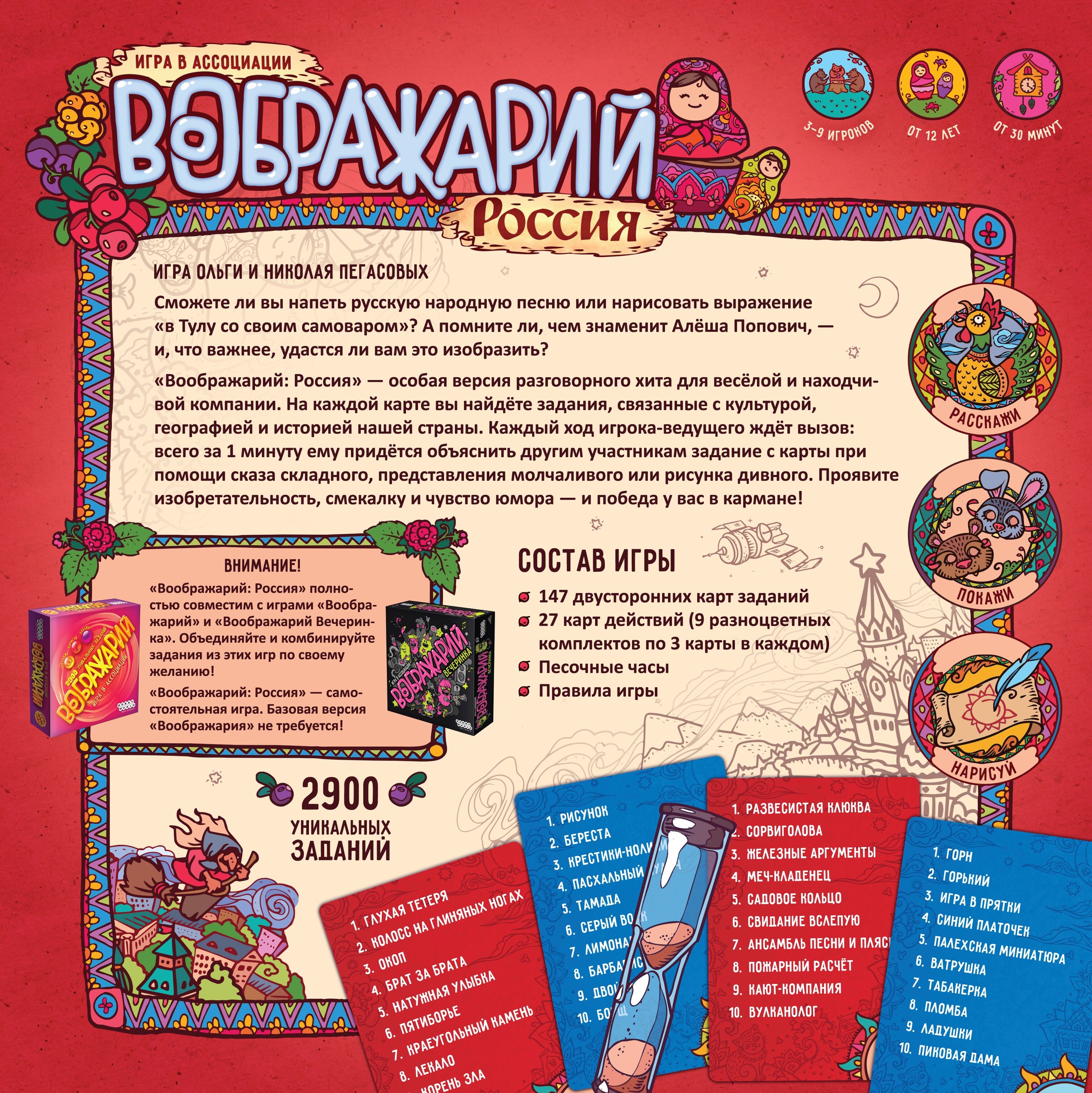 В настольной игре "Воображарий" игроки объясняют слова, быстро и тремя способами - показывают, рисуют или используют слова без синонимов и однокоренных. Времени на все дается всего минута, и кто успеет отгадать, получает победные очки. Ведущий в этом раунде также получает призовой балл. Кто больше наберет? Готовы посоревноваться и проявить свои таланты актера, художника и оратора?