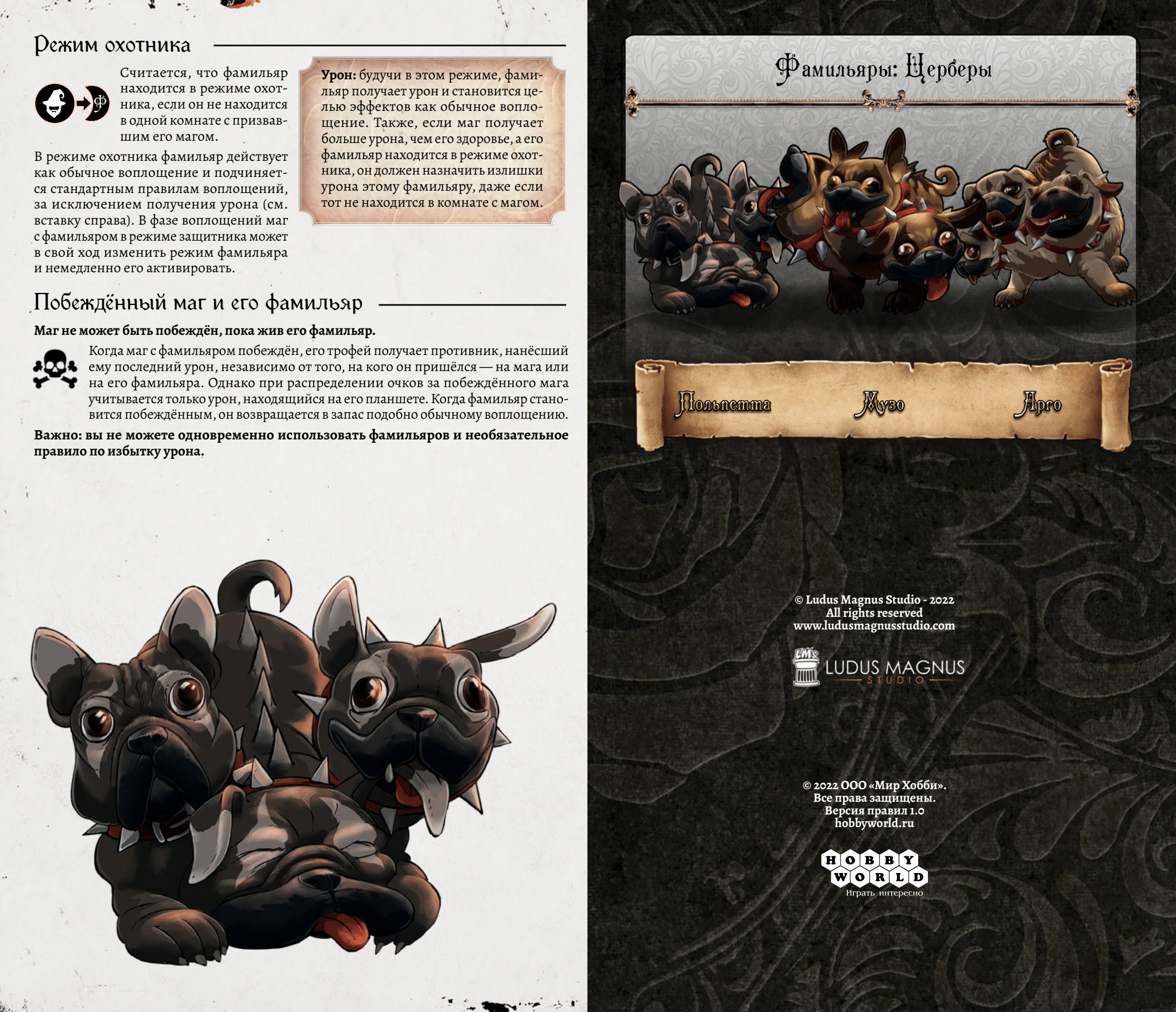 Три верных защитника-фамильяра добавятся в вашу колоду. Яростные церберы смогут принять удар на себя, либо пойти в атаку на врага, сражаясь на вашей стороне. Разыгрывайте карты существ, применяйте заклинания и накапливайте мощь для того, чтобы стать победителем!