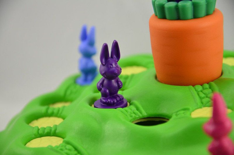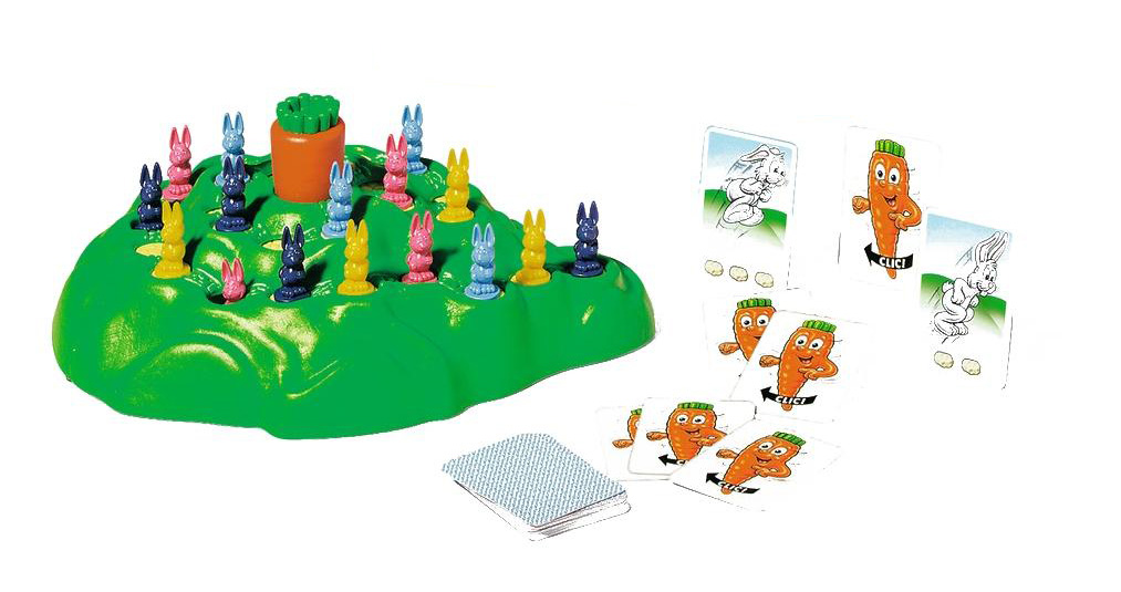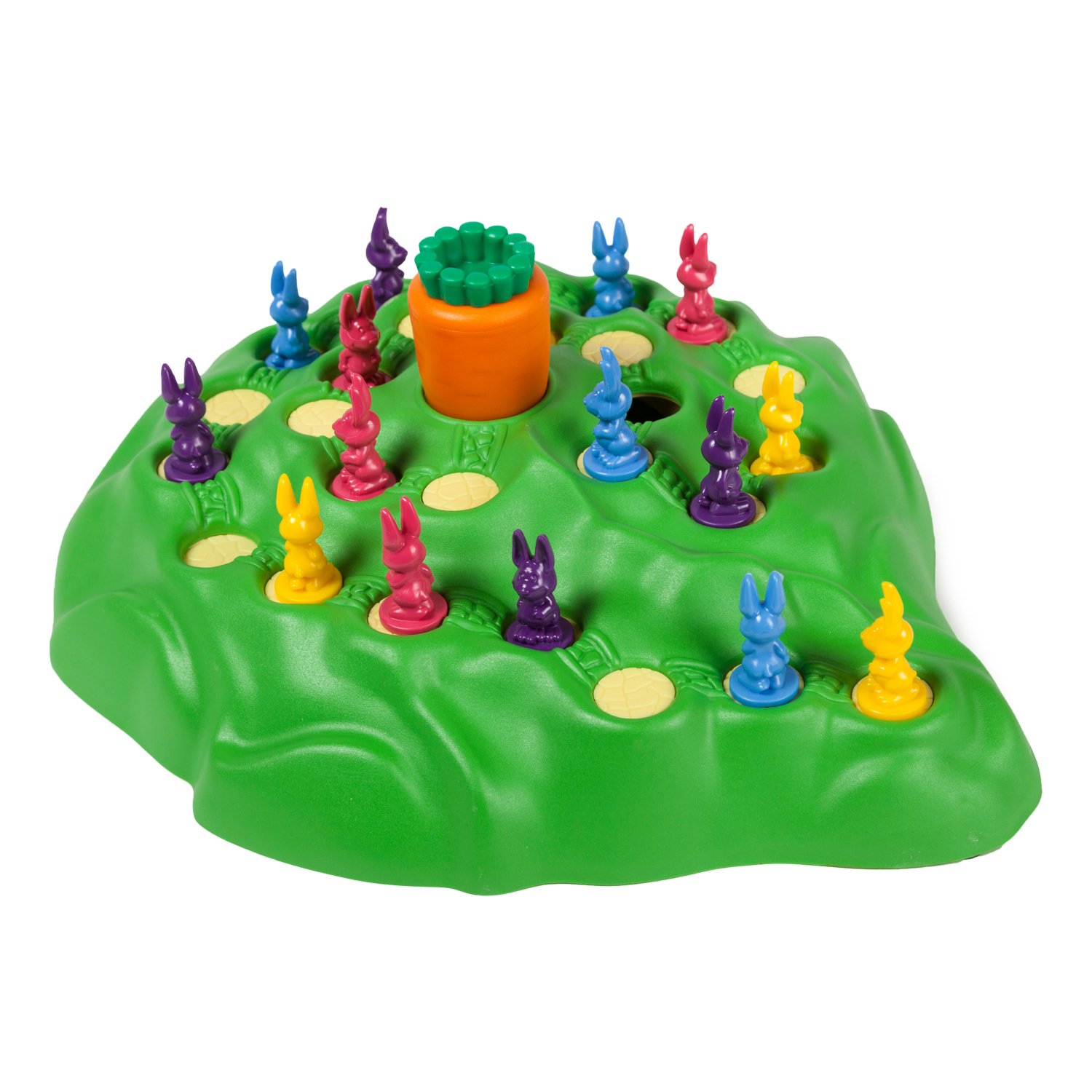 Каждый игрок получает себе 4 кроликов, расставляет их на механическое поле, на вершине которого находятся заветная морковка. В свой ход можно либо передвинуть кролика, либо покрутить морковь. И это действие может привести к неожиданным последствиям! Норки под кроликами открываются, и они проваливаются под поле. Если игрок теряет всех своих приспешников, он выбывает из игры. Кто будет самым удачливым и доберется до морковки? Красочная игра для детей и взрослых даст вам ответ на этот вопрос!
