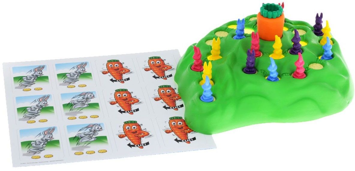 Охота за морковкой началась! Каждый игрок получает себе 4 кроликов, расставляет их на механическое поле, на вершине которого находятся заветная морковка. В свой ход можно либо передвинуть кролика, либо покрутить морковь. И это действие может привести к неожиданным последствиям! Норки под кроликами открываются, и они проваливаются под поле. Если игрок теряет всех своих приспешников, он выбывает из игры. Кто будет самым удачливым и доберется до морковки? Красочная игра для детей и взрослых даст вам ответ на этот вопрос!