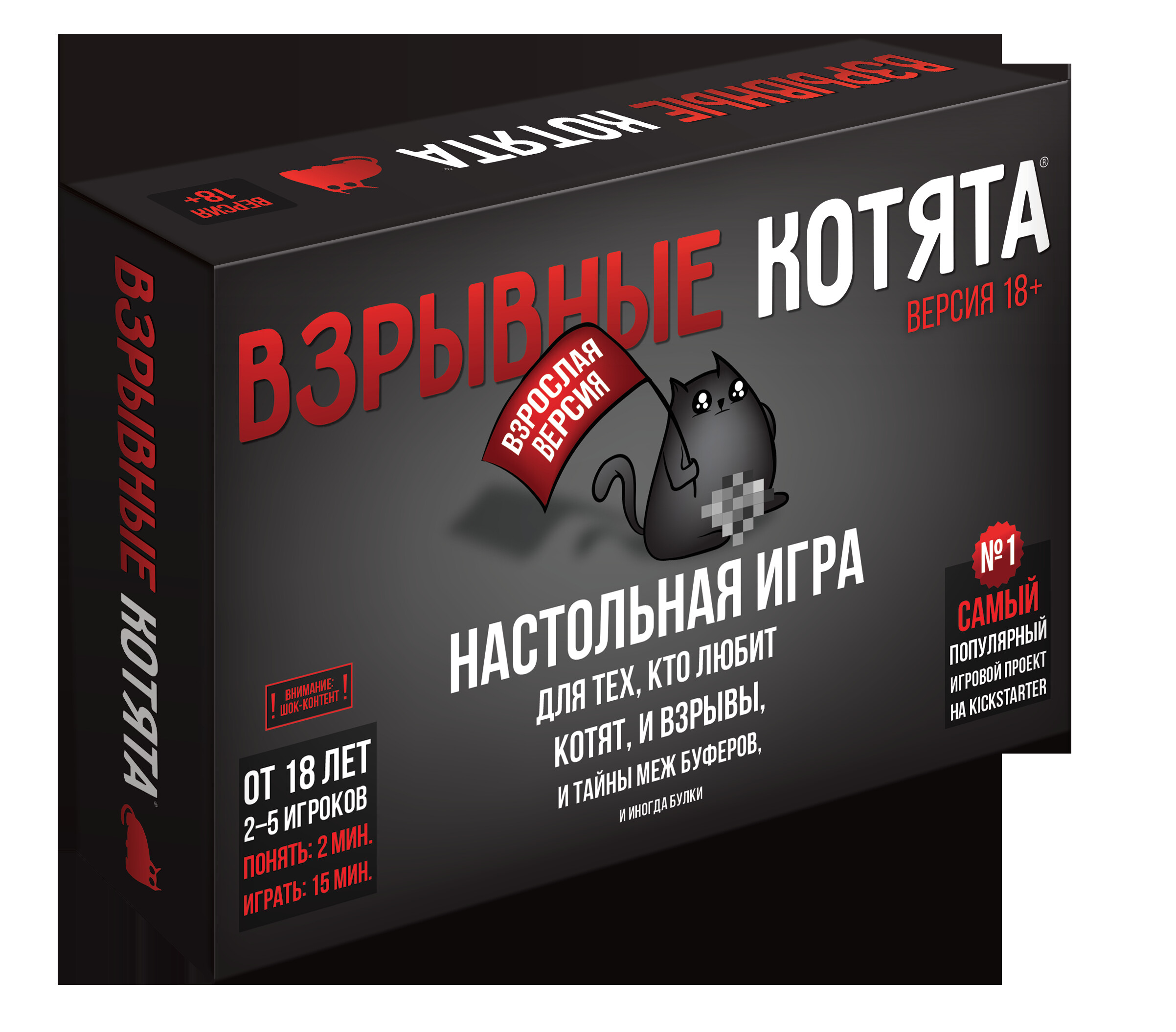 Котики бывают разные: пушистые, добрые, ласковые, злые, а в данной настольной игре еще и взрывные! "Взрывные котята" - простая карточная игра наподобие "русской рулетки", где игроки по очереди тянут карты из общей колоды. Если кому-то попадется карта "взрывного котенка", ему нужно избавиться от нее с помощью тех карт, что он вытянул до этого. Методы бывают разные - замешать карту "взрывного котенка" в центр колоды, отдать другому игроку, и пусть он там уже с ней разбирается. Но если у игрока нет карт противодействия, он выбывает из игры. И так продолжается, пока не останется только один! Красочное оформление, забавное описание карт и затягивающий игровой процесс - "Взрывные котята" развеселят и увлекут любого! *Данная версия разработана для взрослых компаний, отличается рисовкой и описанием карт.