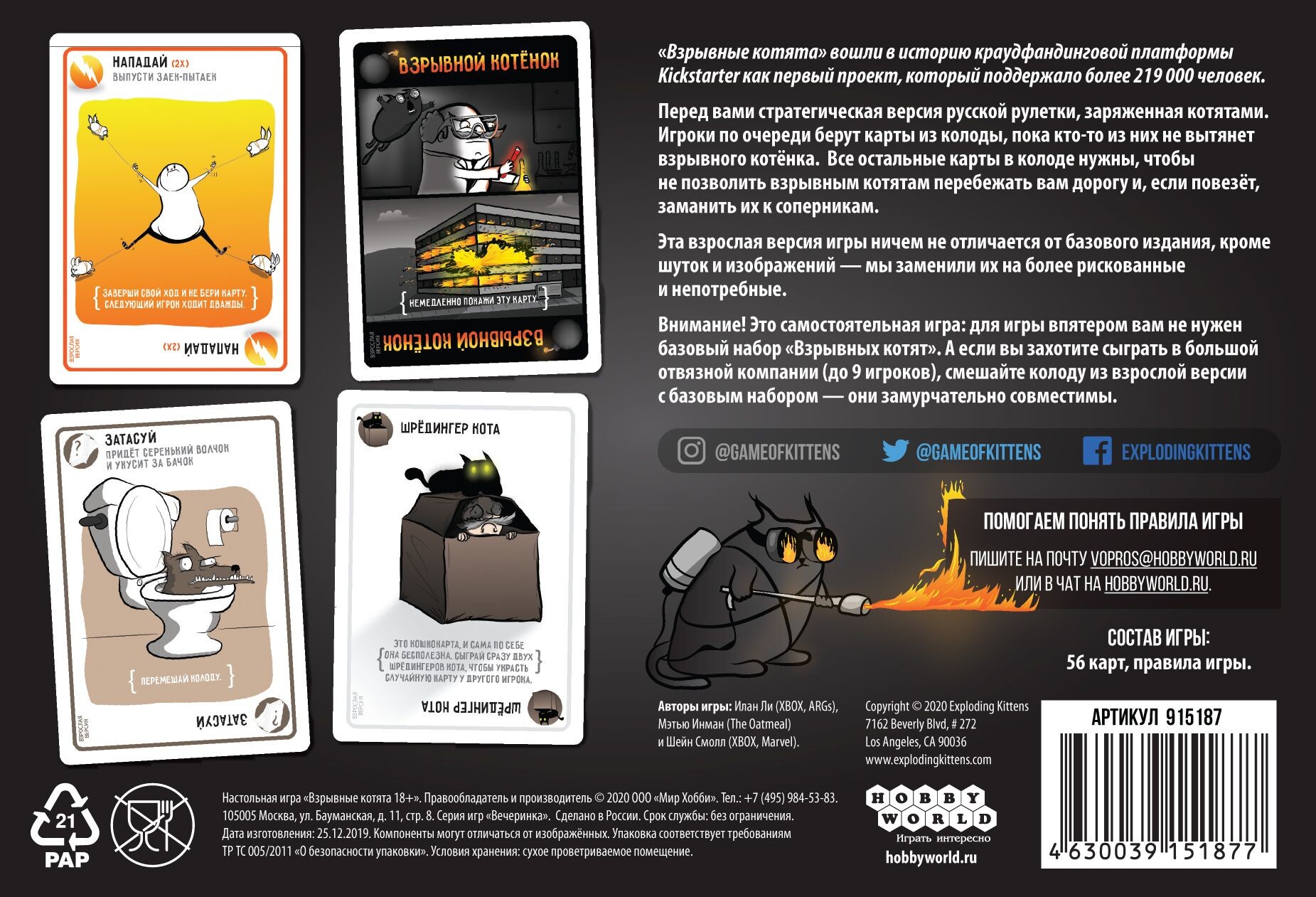 Котики бывают разные: пушистые, добрые, ласковые, злые, а в данной настольной игре еще и взрывные!
