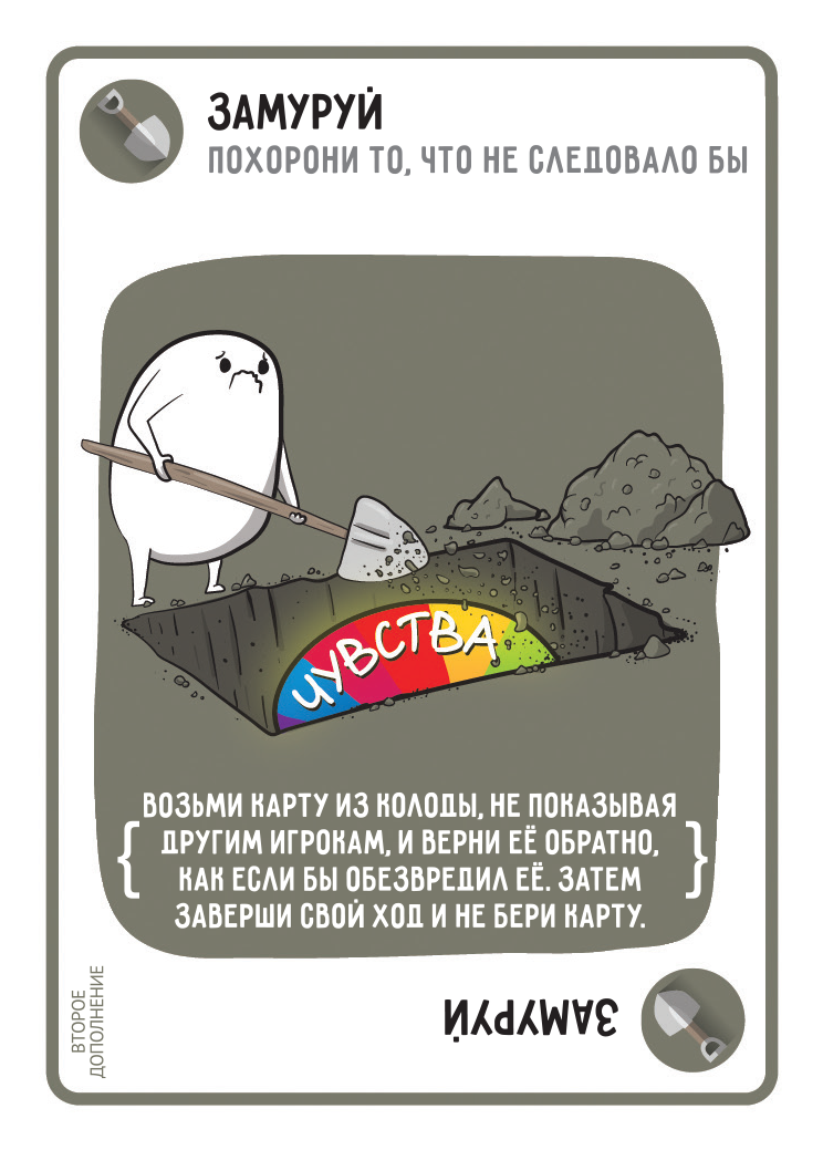 Теперь партии станут еще более непредсказуемыми и веселыми, ведь с двадцатью картами из данной коробки вас ждет много новых возможностей. Теперь участники смогут забирать карты с руки друг у друга, нарушать очередность хода, убрать в колоду только что вытянутую карту и многое другое! Но расслабляться тоже не стоит - благодаря нововведениям, вы легко можете потерять половину карт со своей руки! Попробуйте новые возможности и постарайтесь не взорваться!