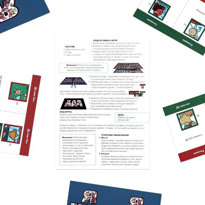В данной игре участники получат карточки с условиями задач и игровые поля с большим количеством иллюстраций. В зависимости от типа задания, игроки объясняют друг другу искомое слово. Кто догадался, должен найти загаданное среди рисунков на поле и назвать его расположение. В этом случае он получит карточку себе. Кто наберет наибольшее количество карт, тот и победит!