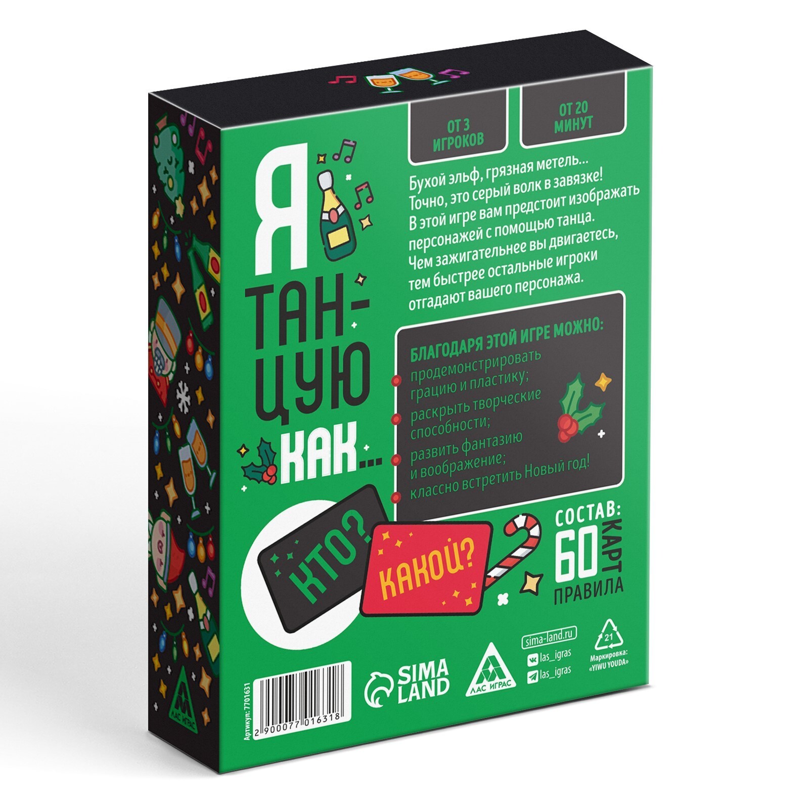 Данное веселое соревнование в новогодней тематике проверит ваш уровень артистизма. В коробке вы найдете различные карточки с именами известных персонажей, а также карты с их качествами. Игроку нужно будет показать выбранные карты с помощью танца так, чтобы другие участники смогли отгадать, кто же имеется ввиду. Данная версия подойдет для взрослой компании и поможет встретить новогодние праздники по-настоящему незабываемо. Тот, кто сможет отгадать наибольшее количество персонажей, станет победителем!