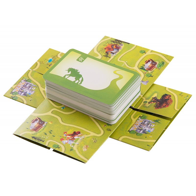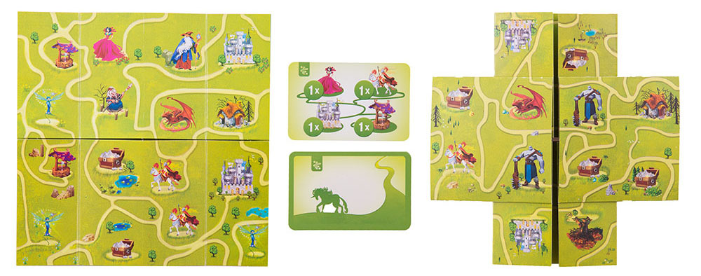 В данной настольной игре каждому игроку достается небольшое складное поле, которое можно сложить разными способами. В зависимости от выбранного задания, игроки начинают соревноваться, кто быстрее сложит свое поле таким образом, чтобы на нем было нужное количество сказочных персонажей, причем не больше и не меньше. Сделать это не так-то просто, вам придется приложить все свои усилия. А когда подобные задания станут для вас слишком легкими, попробуйте усложненный режим, где все герои должны быть соединены тропинками.