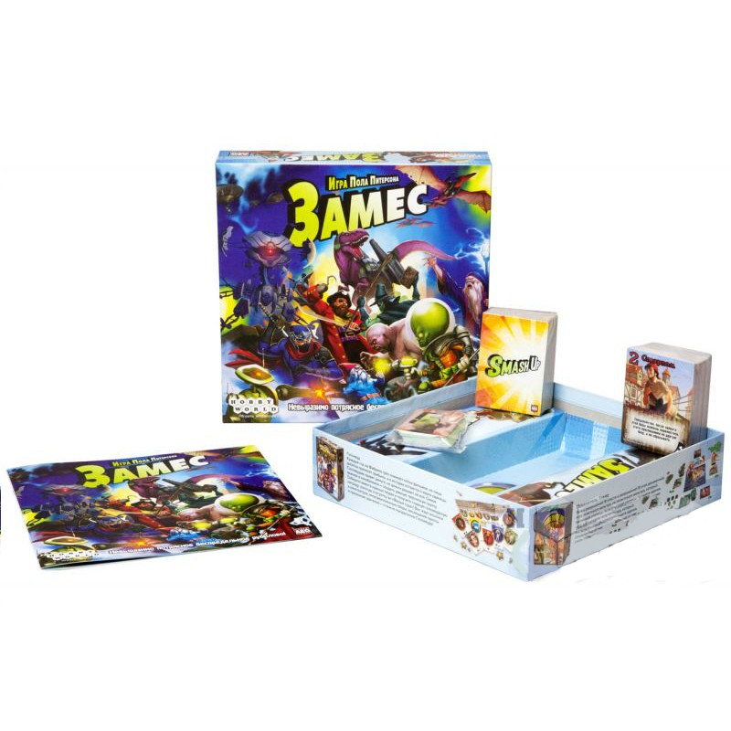 Ниндзя против роботов, зомби против магов, - на этом поле битвы сошлись все!¶¶В настольной игре "Замес" каждый игрок берет две колоды карт разных фракций и формирует из них одну, создавая самые безумные сочетания. Множество комбинаций и яркие персонажи с разными возможностями позволят игрокам захватывать базы и замедлять соперников. Кто захватит больше баз, тот и выйдет победителем из этого замеса. Комбинируйте существ, применяйте различные приемы и эксперементируйте с возможностями карт. Зомби-динозавры, стреляющие лазером из глаз, ждут вашей команды!