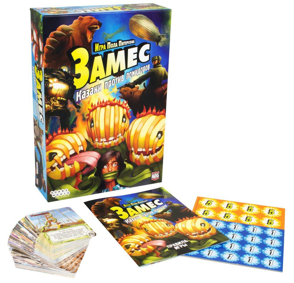 В данной настольной игре вам предстоит объединить две колоды карт различных фракций в одну, и с помощью нее победить своих соперников. Главной особенностью является огромное количество комбинаций карт и возможностей. "Казаки против помидоров" встретят вас призраками, медведями, хищными растениями и фракцией в стиле "стимпанк". Попробуйте разные комбинации, дабы найти для себя преимущество на поле боя и получить еще больше удовольствия от игры! Данная версия самостоятельна, однако, при желании, вы можете объединить ее с любым другим "Замесом". Еще больше безумных комбинаций!