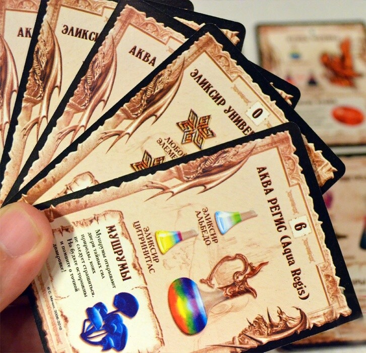 С помощью карт игроки будут собирать компоненты для создания зелий, талисманов и магических существ. Начинают все с четырьмя картами на руке, после чего алхимики могут совершить одно из действий - выложить новый элемент на стол, получив за это очки; взять карту со стола, дабы завершить магическую формулу; объединить простые формулы в более сложные, увеличив число победных очков, и даже использовать заклинания, дабы преобразовать одну формулу в другую. За каждое завершенную задачу алхимики получают победные очки, и победит в этом карточном противостоянии лучший!