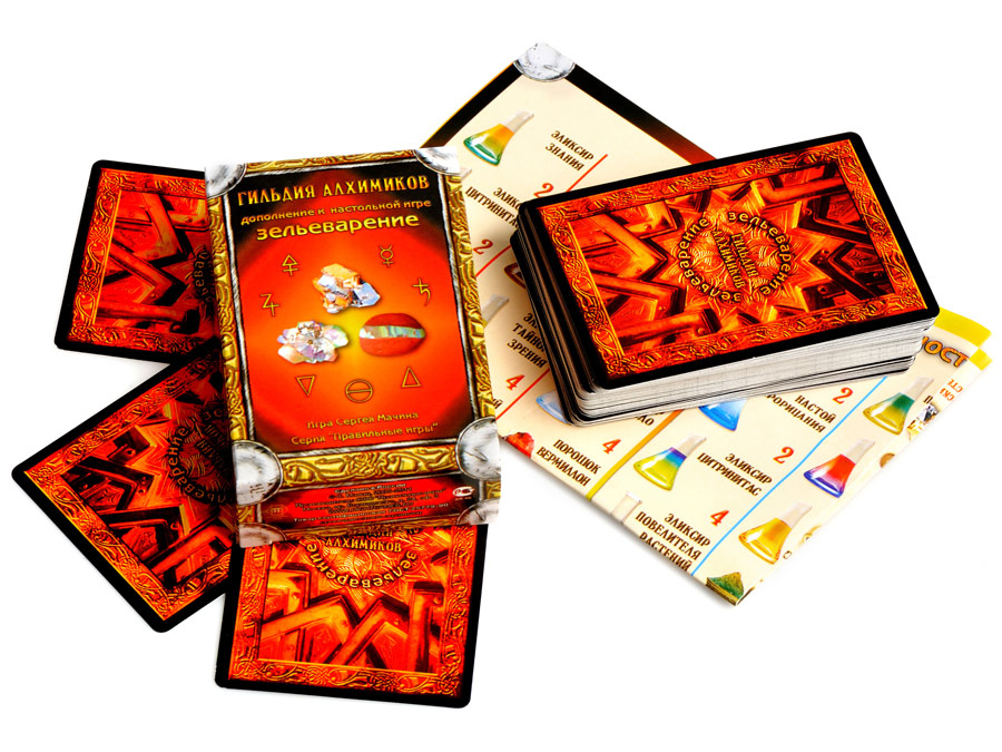 Вам кажется, что "Университетский курс" слишком заумный, а базовый набор уже наскучил? Тогда "Гильдия Алхимиков" - это то, что нужно. В этом дополнении помимо сбора обычных эликсиров каждый игрок старается также получить Философский камень.