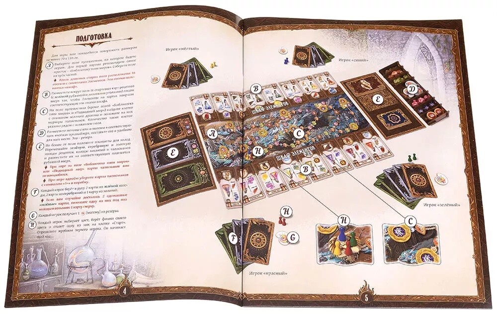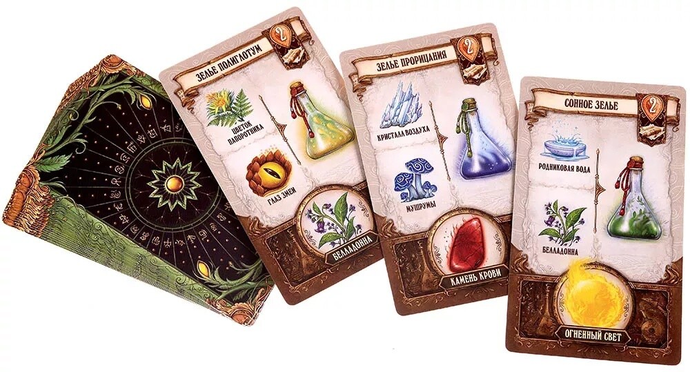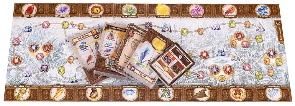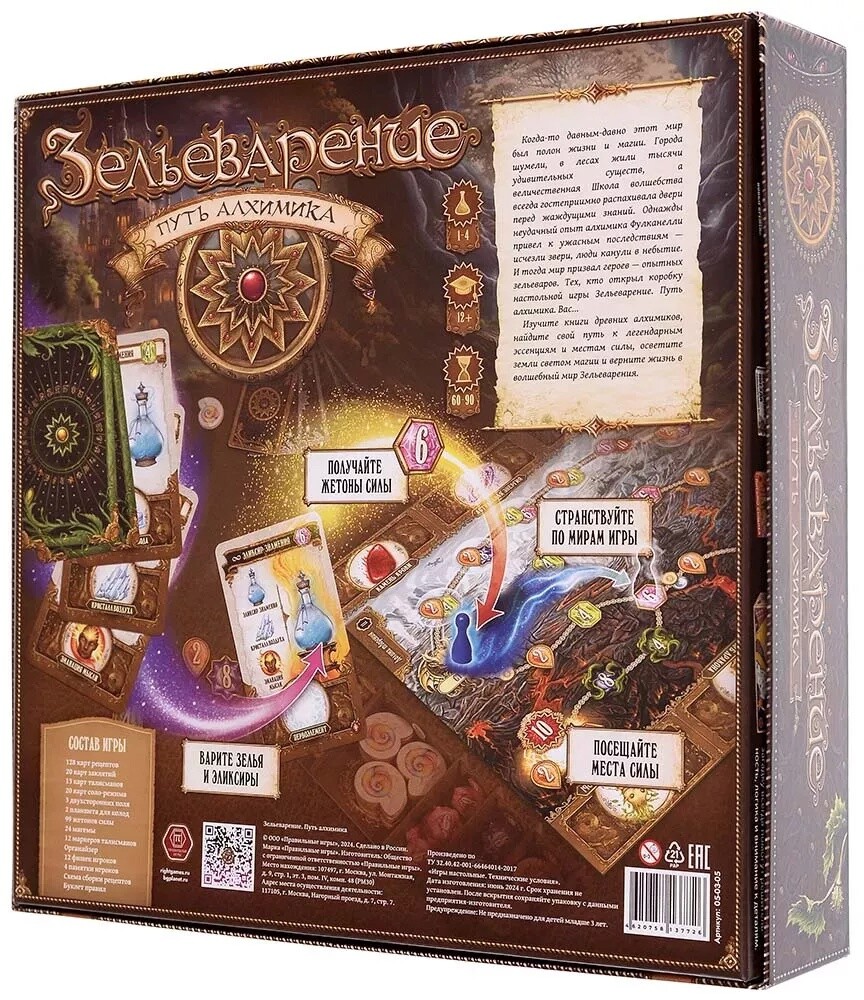 В новой версии культовой игры участников ждет увлекательное соревнование, полное магии и алхимии. С помощью карт игрокам предcтоит варить зелья, эликсиры и нектары, разные виды которых принесут разное количество победных очков. С помощью таких очков участники получат возможность путешествовать по игровому миру, борясь друг с другом в попытке первым посетить особые святилища. Помимо этого, вы сможете использовать специальные магемы, разное количество которых можно обменивать на эликсиры и зелья, а также применять свойства талисманов, дающие игроку особые бонусы. Можно попробовать свои силы и в одиночном режиме, где против вас выступит легендарный алхимик, готовый сравнить свои силы с вашими. Стоит отметить, что игра красочно и аутентично оформлена, подходя для всех фанатов фэнтези и просто любителей настольных игр. Кто станет победителем в этом соревновании?