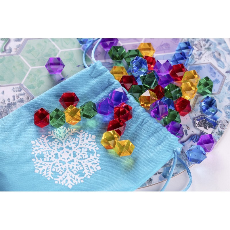Игрокам в роли придворных чародеев предстоит добиться благосклонности Зимней королевы. Как же это сделать? Участники получат в свое распоряжение разноцветные льдины, которые смогут выставлять на поле, формируя узоры, либо заряжать ими свои заклинания, которые в определенный момент дадут сильное преимущество. За законченные узоры мудрая царица одарит вас золотыми монетами, необходимыми для победы.