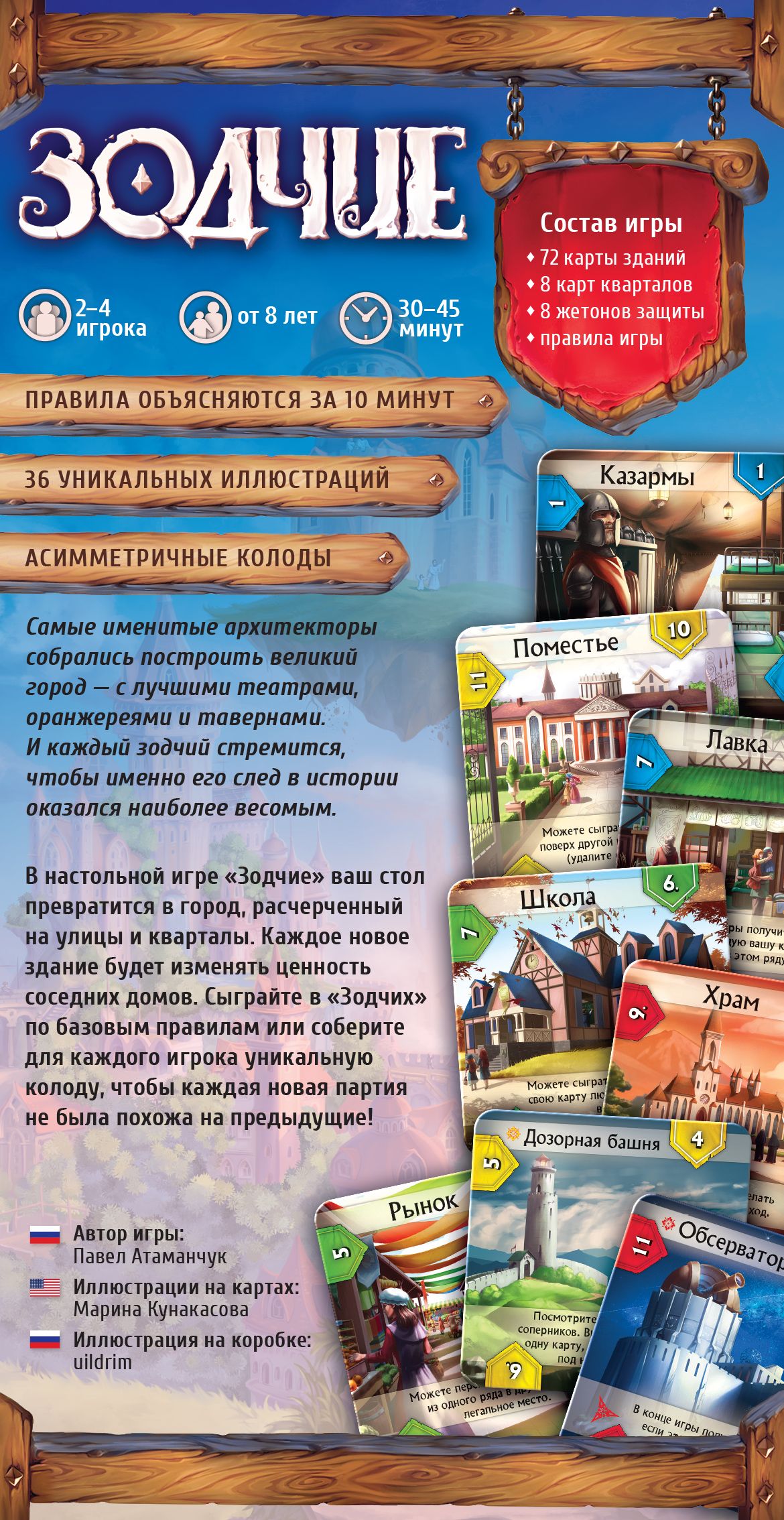 Указ короля прост - создать лучший и самый красивый город. Для этого приглашены зодчие со всего света, и их желание угодить правителю быстро оборачивается борьбой за признание и славу. Кто же станет победителем? Игроки стараются разыгрывать карты с руки максимально эффективно. Каждое строение обладает своей стоимостью, зависящей от соседних зданий. Благодаря различным способностям, участники смогут повышать стоимость своих зданий и замедлять соперников. Множество построек обладают уникальными особенностями, позволяющими добирать карты, менять расположение зданий и их стоимость. Как только игроки разыграют все свои карты, игра завершится подсчетом победных очков, зависящих от стоимости всех построек. Как знать, возможно именно вам удастся получить благосклонность короля и создать лучший квартал в городе.