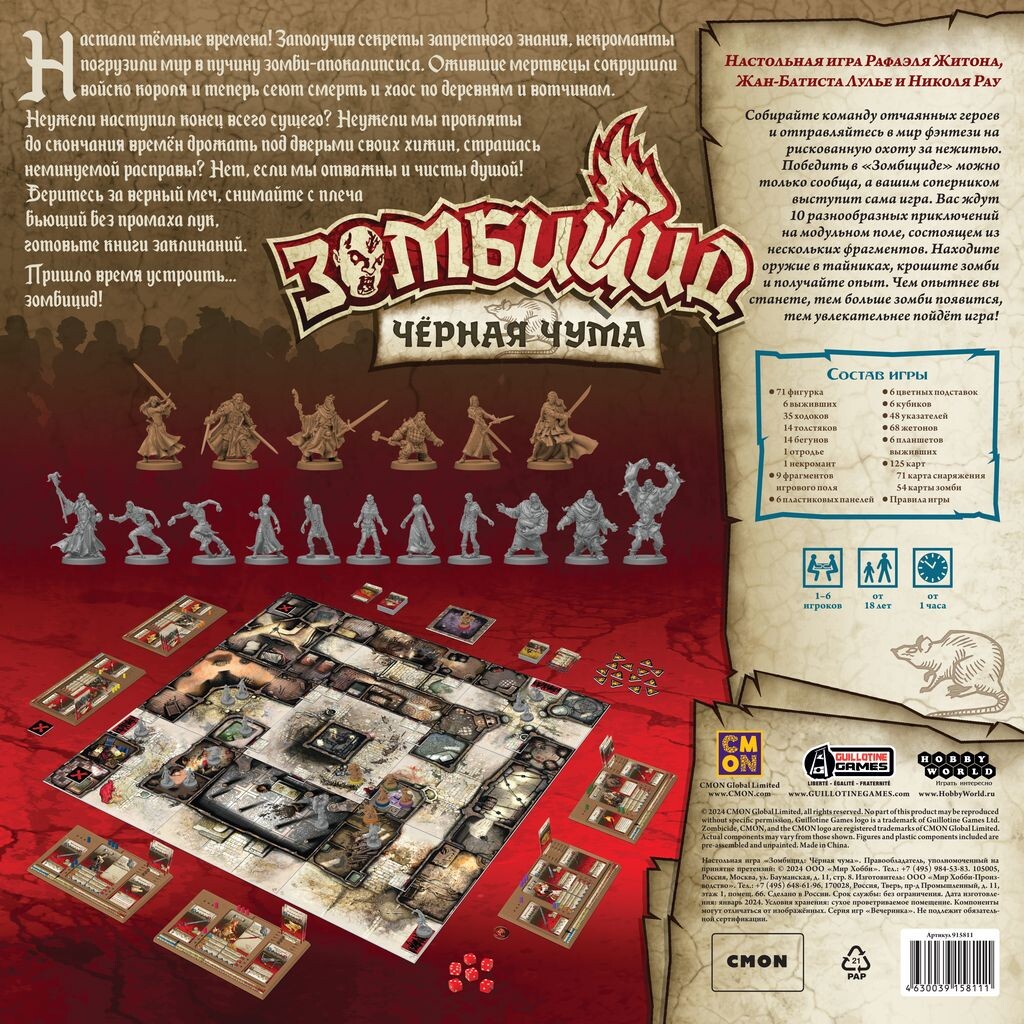 Настольное кооперативное приключение предложит вам взять под контроль могучих воинов, гномов и волшебников, и остановить чуму, созданную некромантами. Средневековая версия популярной игры меняет огнестрельное оружие на мечи, топоры и луки, а снарядить своего героя вы сможете кольчужными доспехами и прочими отличительными атрибутами. Улицы наводнены зомби, а некроманты постоянно ускользают. Исследуйте локации, побеждая врагов и находя артефакты, снаряжение и полезные предметы. Приготовьтесь оказаться перед лицом настоящей опасности и встретиться с особыми монстрами - действуя сообща вы сможете все преодолеть и остановить апокалипсис!