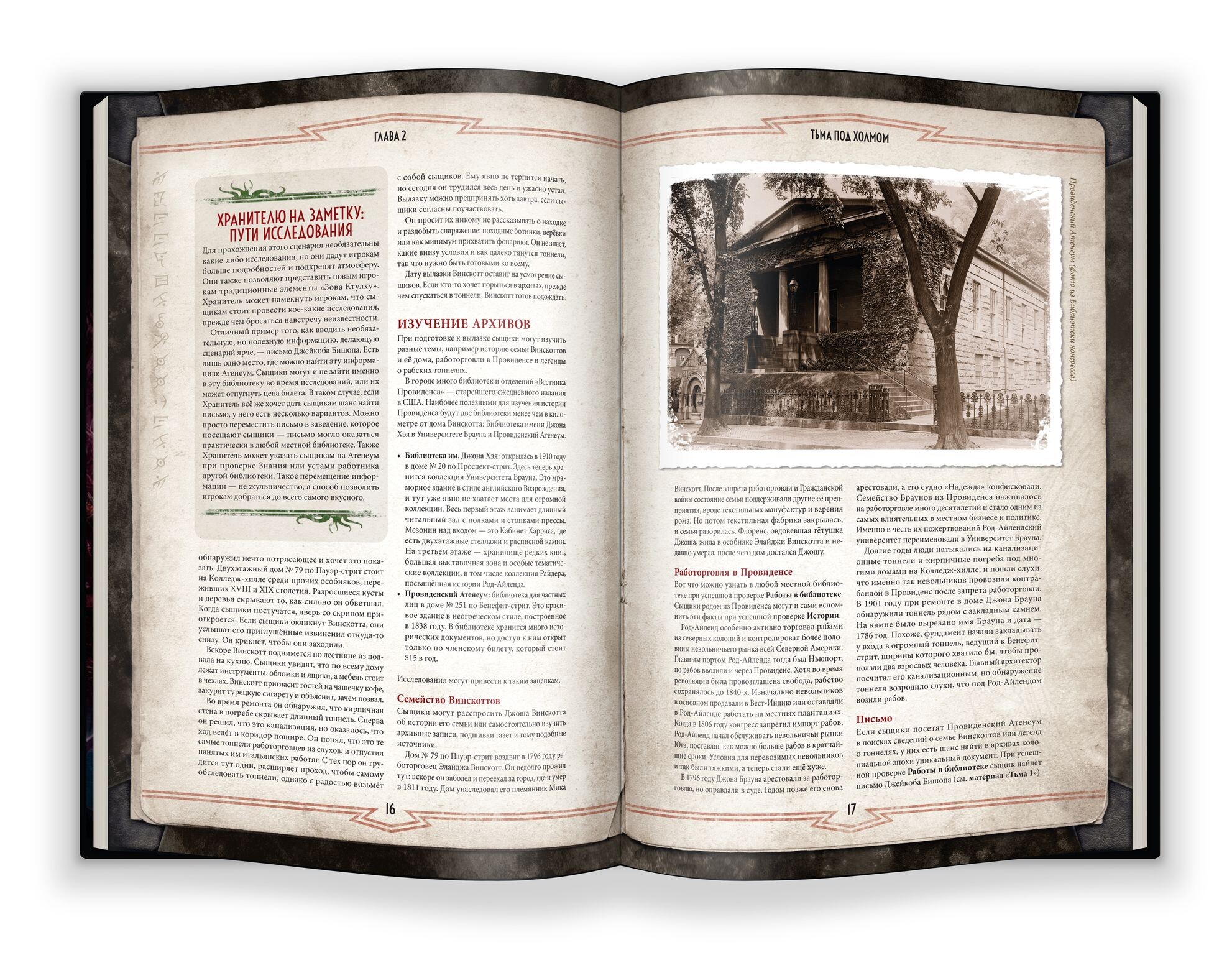 Данный набор включает в себя пять игровых сценариев, в которых вас ждут новые жуткие тайны и загадочные расследования. Окажитесь в отеле, где все не то, чем кажется, исследуйте психиатрическую больницу, и столкнитесь с новыми неописуемыми гранями ужаса. На страницах вы найдете руководство для ведущего, а также характеристики десяти готовых персонажей, с помощью которых можно сразу начать партию. Отважитесь ли вы?