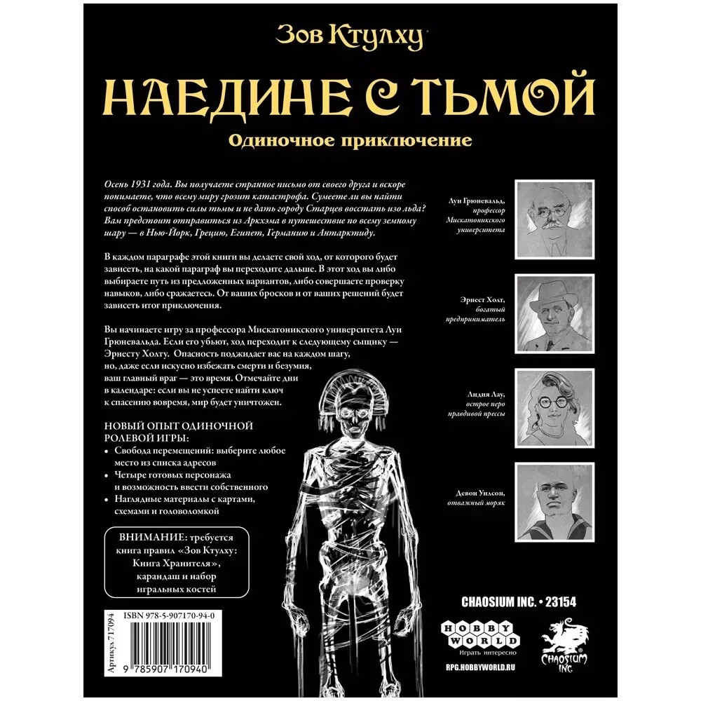 *Внимание! Для игры вам потребуется книга правил "Зов Ктулху: Книга Хранителя" или "Зов Ктулху. Стартовый набор".