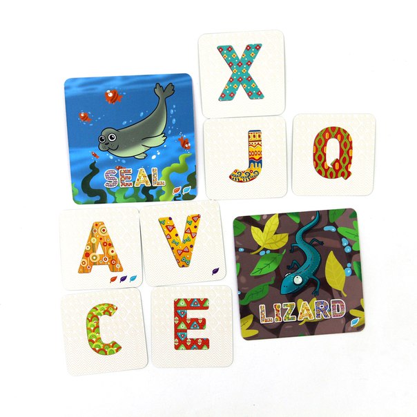 Несколько видов правил, яркие иллюстрации и запоминающиеся образы ждут в небольшой коробке. В классическом варианте карты с буквами и карты с милыми зверюшками выкладываются на стол, причем карты с буквами лежат взакрытую. Задача игроков - переворачивая поочередно карты, собрать полное название выбранного животного. Кто откроет последнюю букву в названии, станет на шаг ближе к победе. В других вариантах правил вы сможете потренировать свою память, составить слово из букв и даже сыграть в аналог лото!