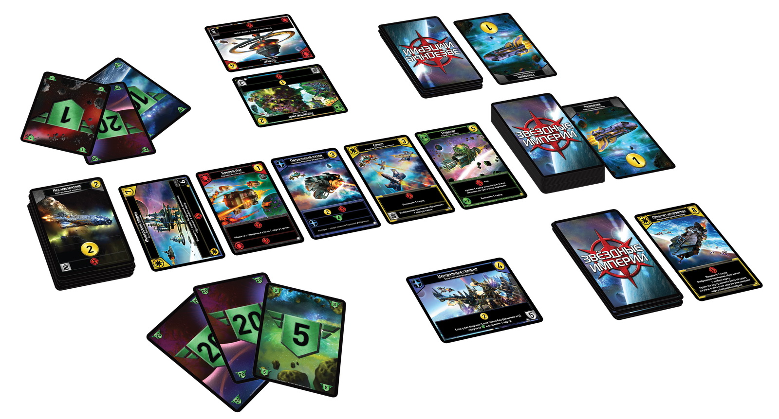 "Звездные империи" возвращаются! Данный вариант легендарной игры предложит игрокам новые корабли и аванпосты, расширяющие возможности достижения победы. Собирайте свой флот, развивайте базы, и боритесь с другими игроками для снижения их зоны влияния. Большое количество тактических возможностей и комбинаций карт подарят вам долгие часы космических противостояний. В данный набор можно играть отдельно, либо объединить с базовым "Звездные империи", что увеличит количество игроков. Запрыгивайте в звездолет, космические битвы ждут!